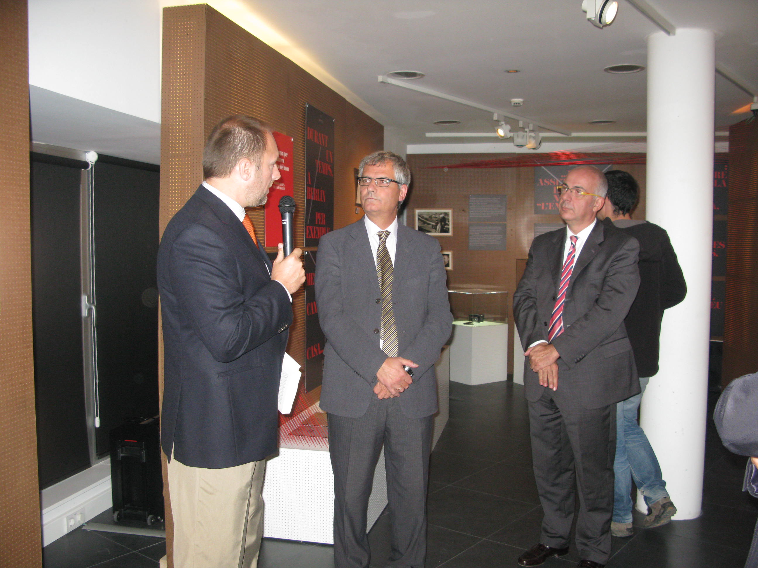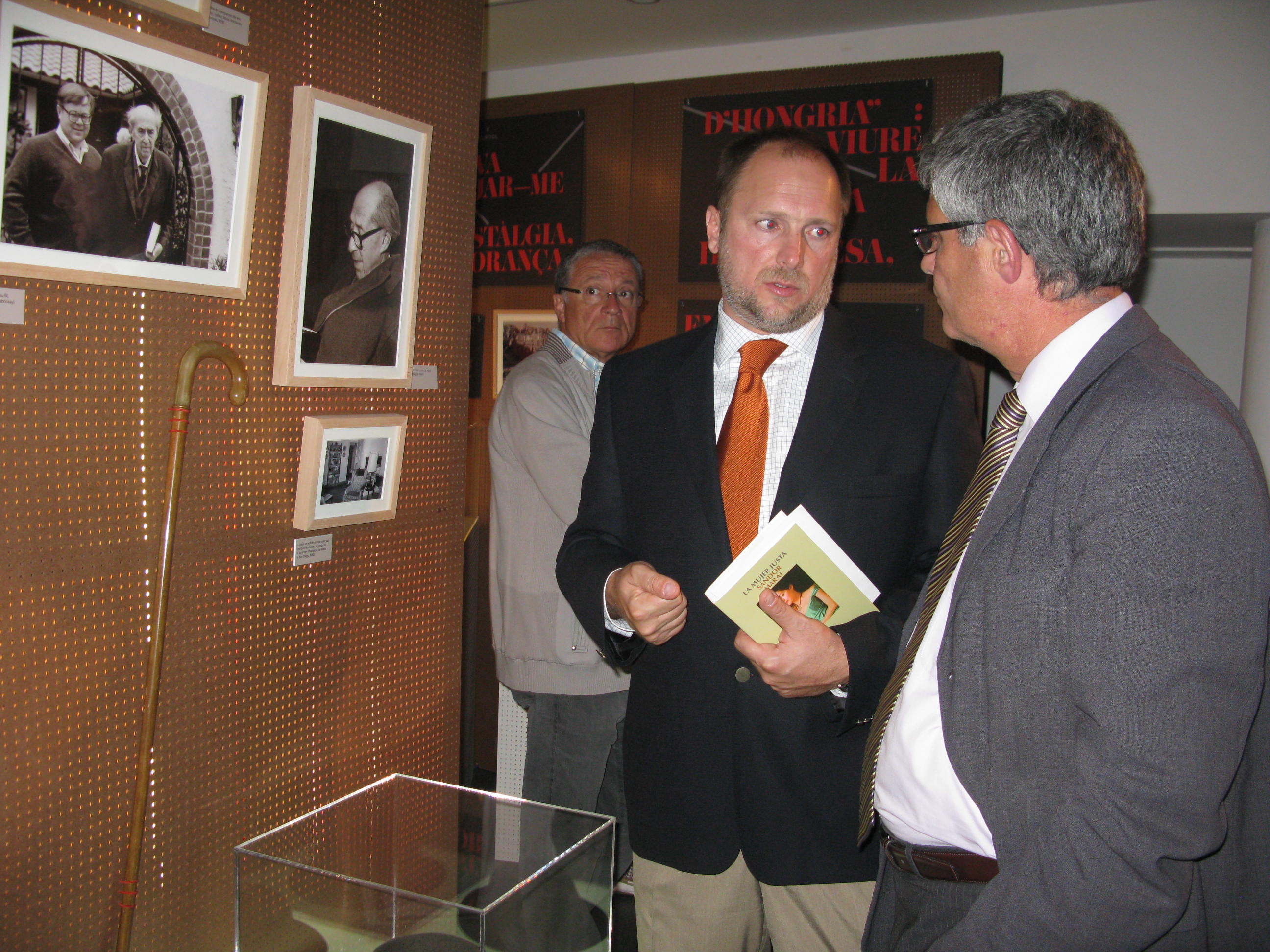 El delegat del Govern, Eudald Casadesús, el director general d’Atenció Ciutadana i Difusió, Ignasi Genovès, el cònsol d’Hongria a Barcelona, Iván Medveczky, i el director general de l'EADOP, Jordi Miró, han estat presents aquest vespre a la inauguració. El cònsul d'Hongria ha repassat la trajectòria de l'escriptor i ha llegit algun text destacat de la seva obra. Per la seva banda, el delegat del Govern ha volgut remarcar la capacitat que té "la cultura per generar vincles entre persones i entre societats" com és el cas d'aquesta exposició amb "els lligams entre Catalunya i Hongria que es generen".