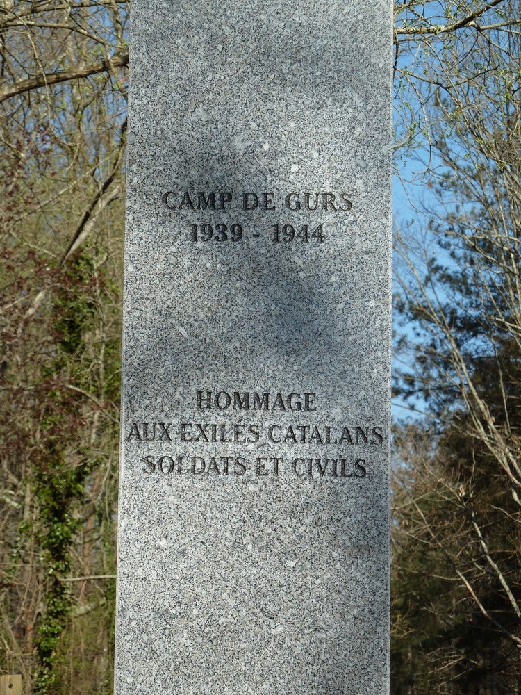 El monòlit d’homenatge als catalans internats a Gurs, instal·lat entre els de molts altres països i col·lectius, és una actuació del Memorial Democràtic dins del programa Europa amb els Ciutadans de la Comissió Europea i del projecte La deportació espanyola als camps nazis: història i memòria. És en el marc d’aquest mateix projecte europeu que el Memorial Democràtic ha organitzat recentment els col·loqus internacionals Walter Benjamin a Portbou i De l’exili a la deportació al Museu d’Història de Catalunya.