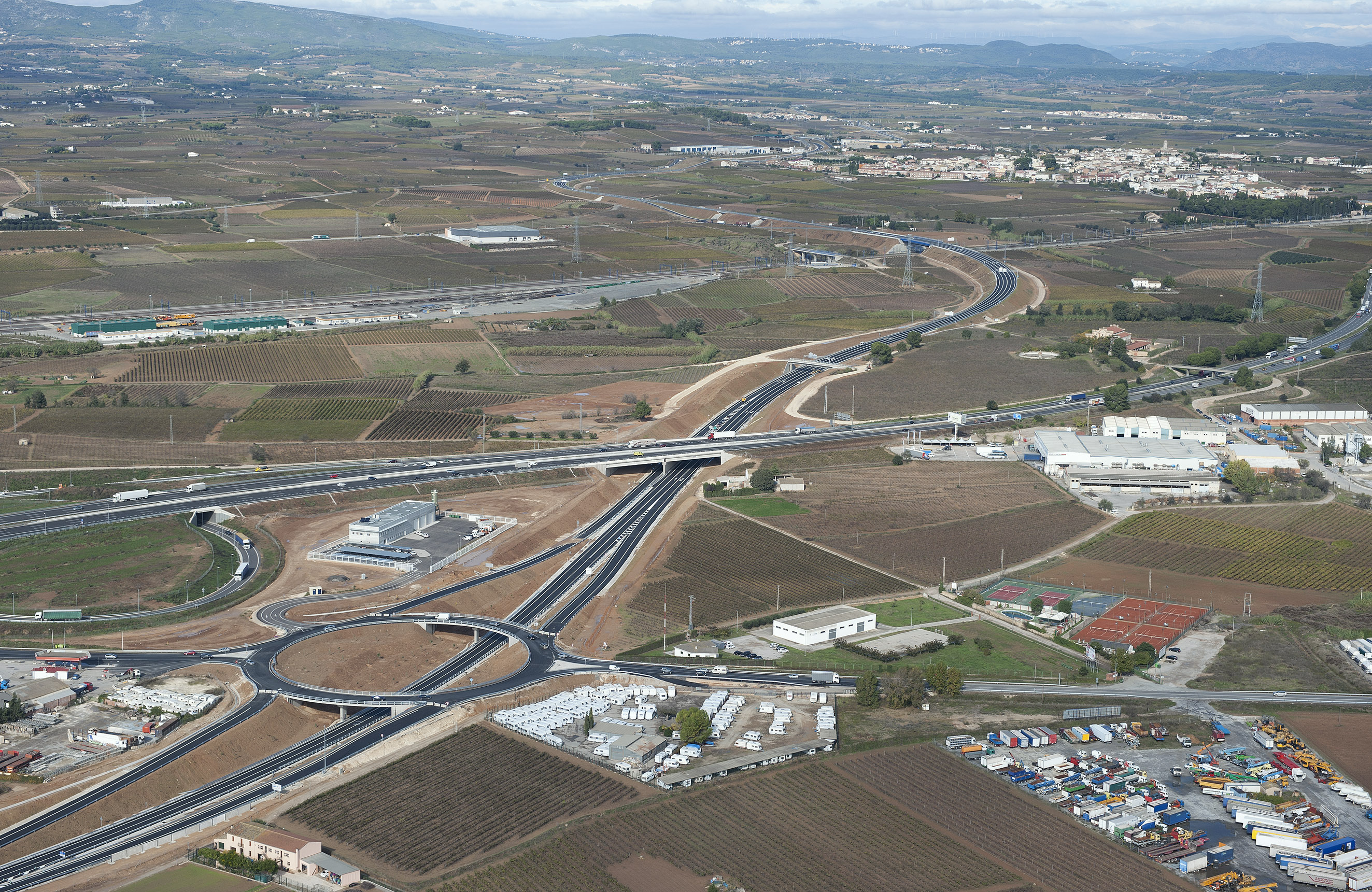 De les 7 noves estructures que s’han construït, cal remarcar el viaducte mixte que creua la línia d’alta velocitat i la línia de tren convencional, amb una longitud de 64 metres i el pas sota l’AP-7, de 54 metres de longitud.