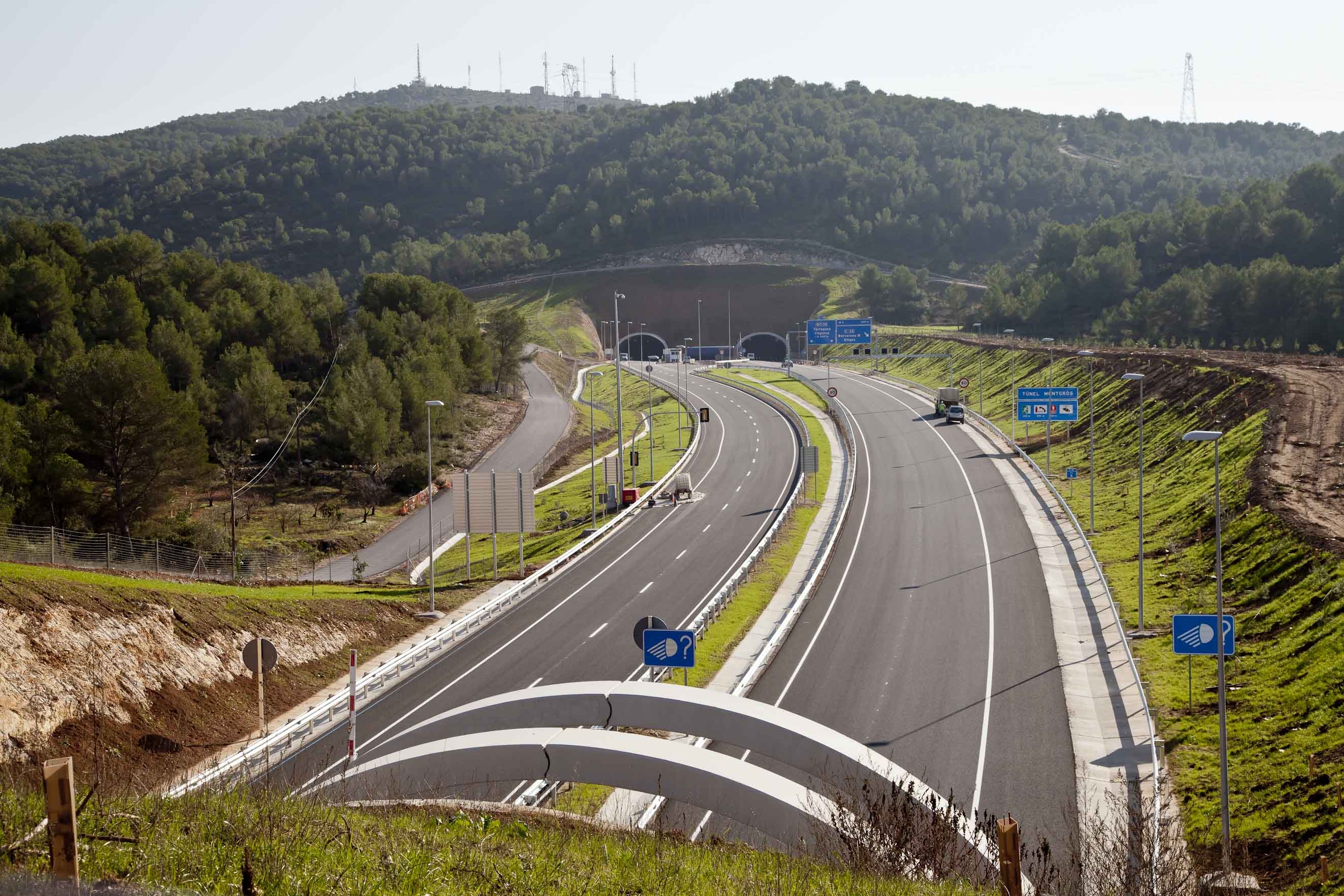 - Construcció d’un ecoducte per a garantir la connectivitat de la fauna entre els espais naturals del Garraf, Olèrdola i el Foix. Així mateix, s’han adequat els elements de drenatge per facilitar el pas de la fauna entre els marges de la nova via.