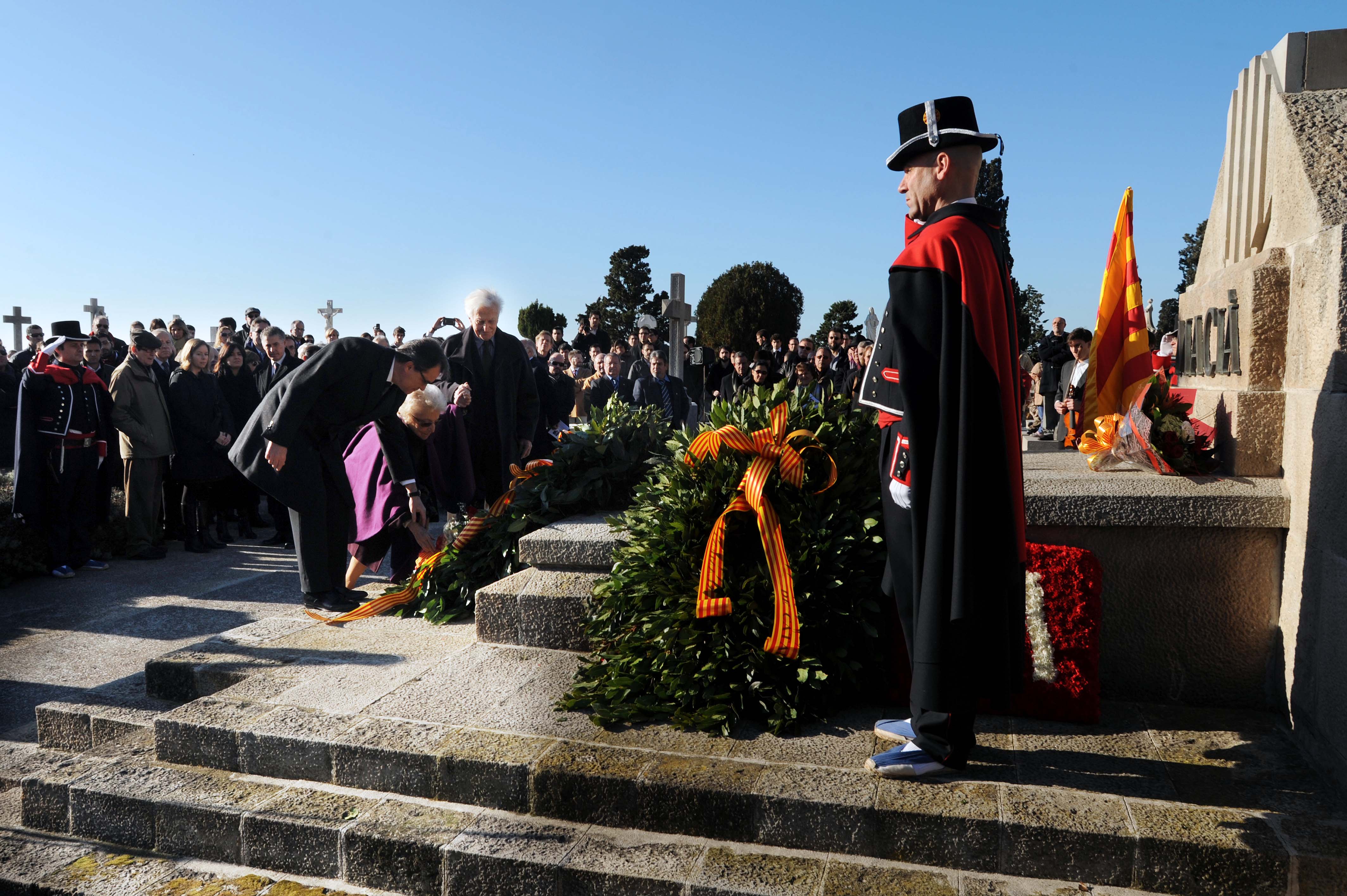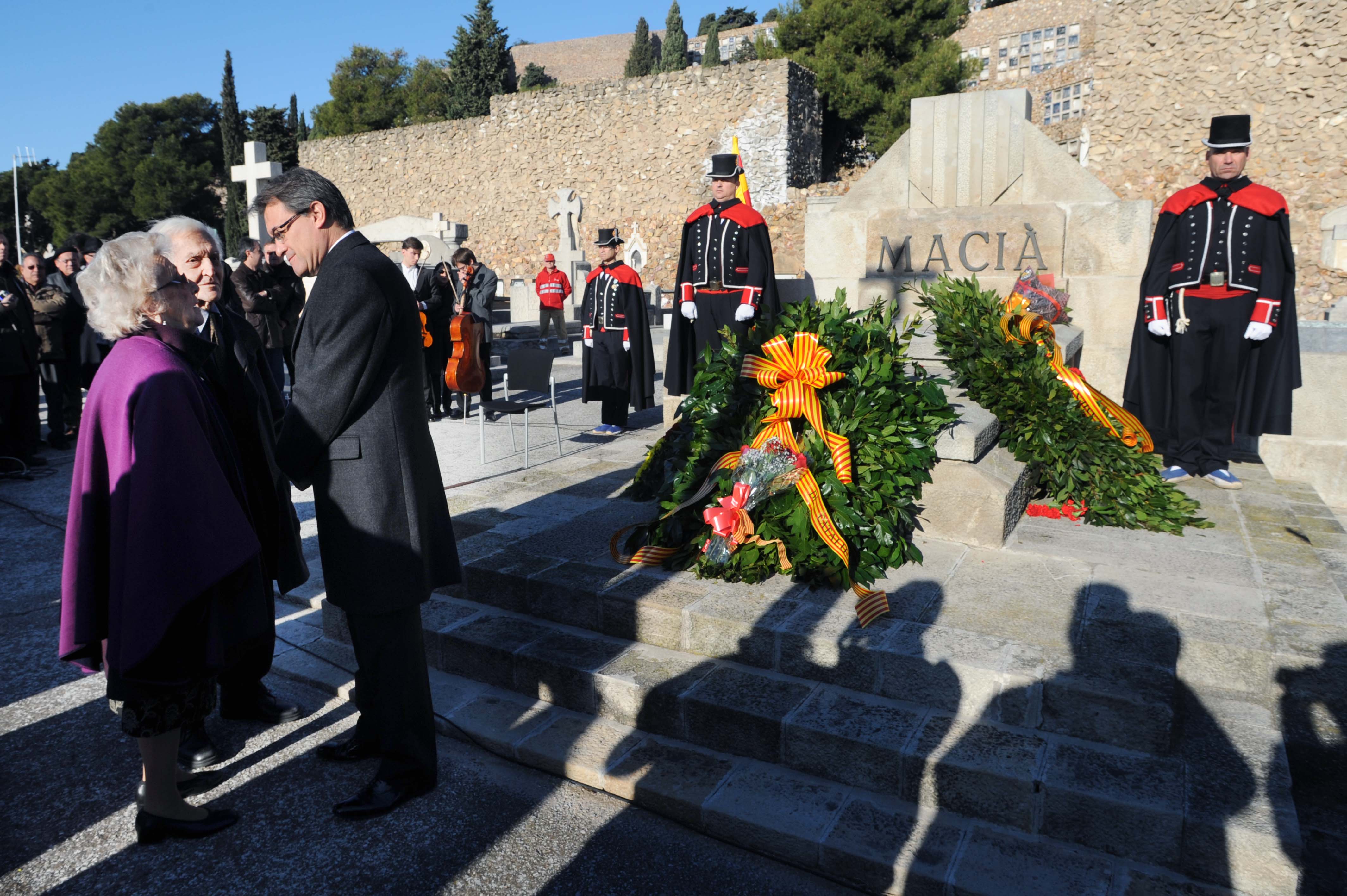 El president de la Generalitat, Artur Mas, ha volgut aprofitar l’ofrena floral davant la tomba del president Macià per desitjar “Bon Nadal a tothom”. El cap de l’Executiu ha recordat que “molta gent pateix el Nadal en condicions d'atur i dificultats creixents” i s’ha mostrat esperançat que “el poble de Catalunya serà capaç de reaccionar i no perdre l'esperança”. “Espero que les coses milloraran i que Catalunya es pugui aixecar, i que tothom que ho passa malament pugui millorar”- ha reblat.
