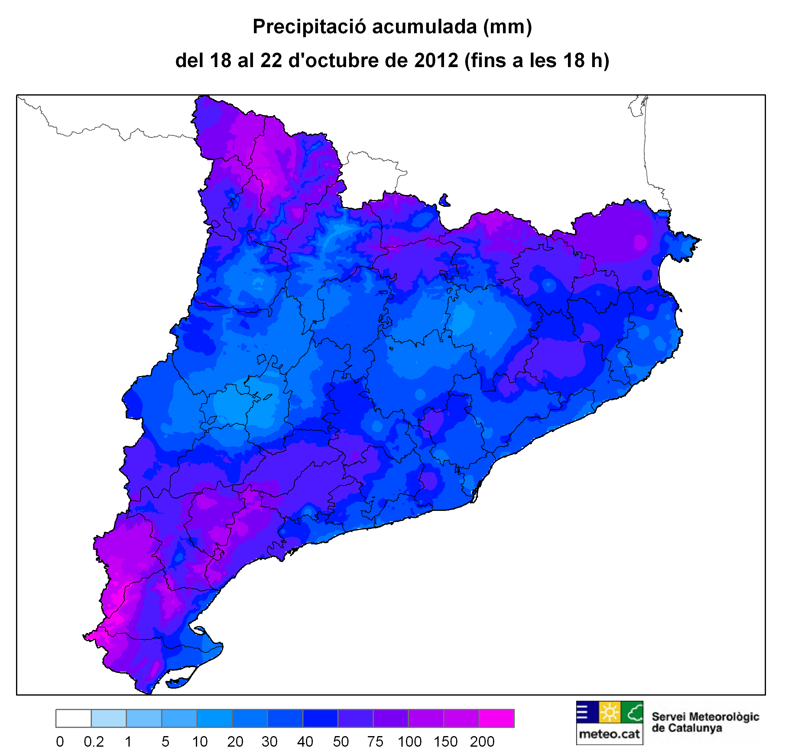 18-22 d’octubre de 2012 fins a les 18:00 hores (mm) |