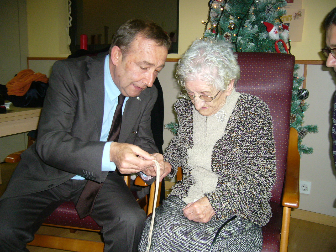 Ana Martínez ha rebut la Medalla Centenària de Benestar Social i Família de mans del responsable de l’Oficina de Gent Gran Activa de la Secretaria de Família del Departament. A l’acte, que s’ha celebrat a la Residència Salus Gràcia, on viu actualment, l’han acompanyat familiars, amics i la direcció i el personal del centre.