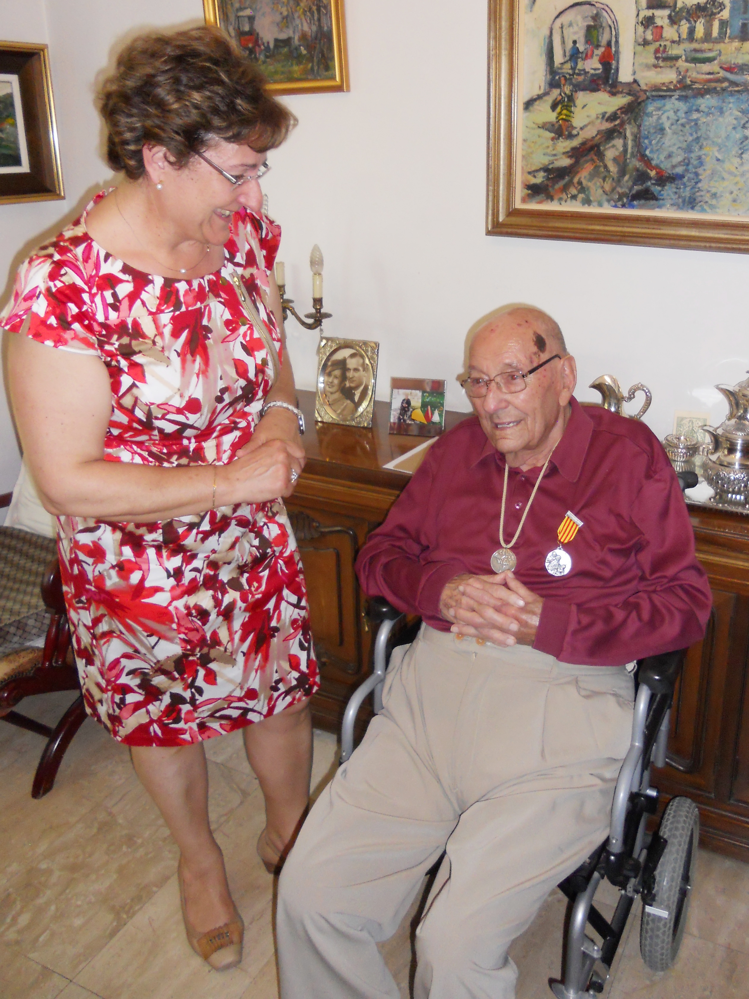 La directora dels Serveis Territorials de Benestar Social i Família a Girona, Montserrat Roura, ha lliurat aquest matí la Medalla Centenària del Departament al senyor David Costa. A l'acte, que s’ha celebrat al domicili de l’homenatjat, també hi han assistit amics i familiars, així com representants de l’Ajuntament de Cadaqués.