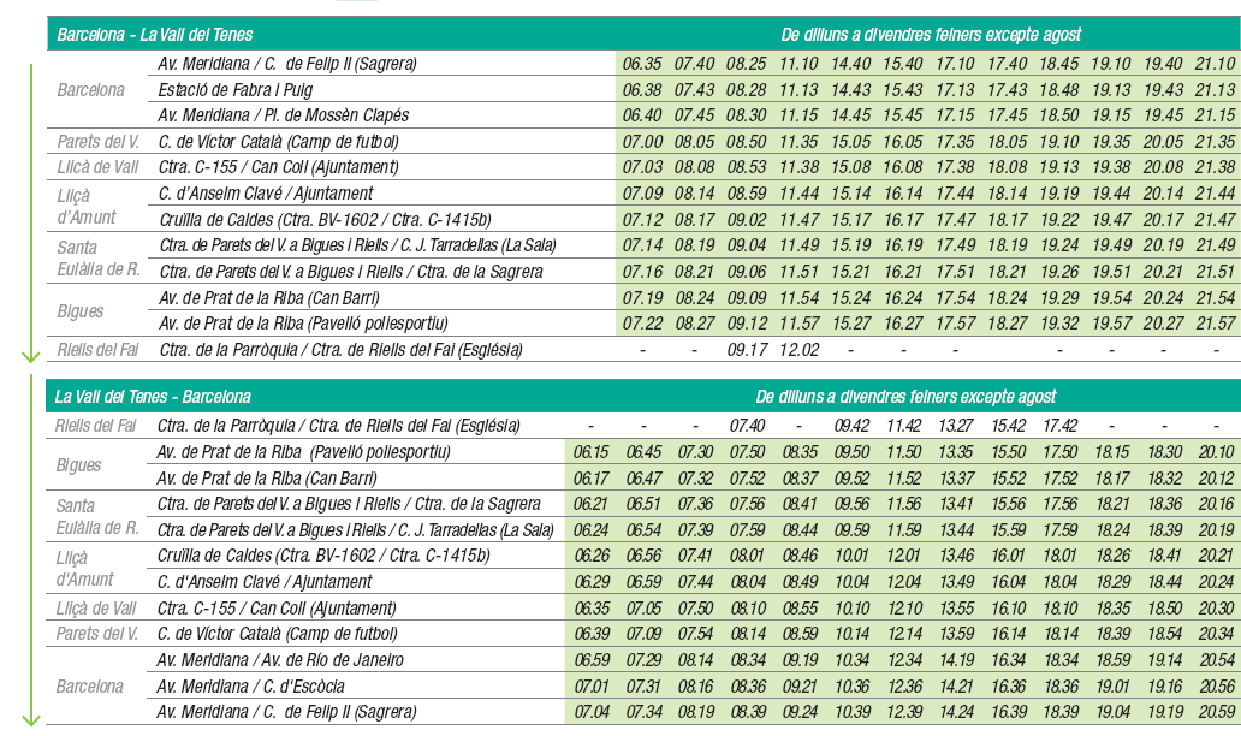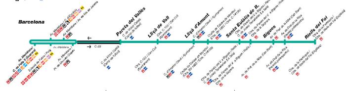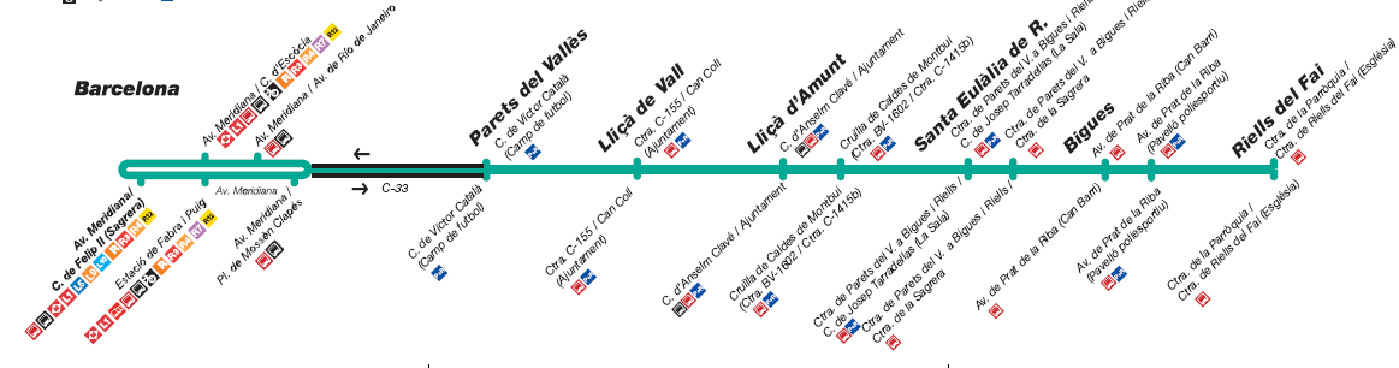 - S’oferiran 12 serveis diaris en sentit Vall del Tenes i 13 a Barcelona, amb velocitat comercial alta, per la C-33 i amb prioritats semafòrique