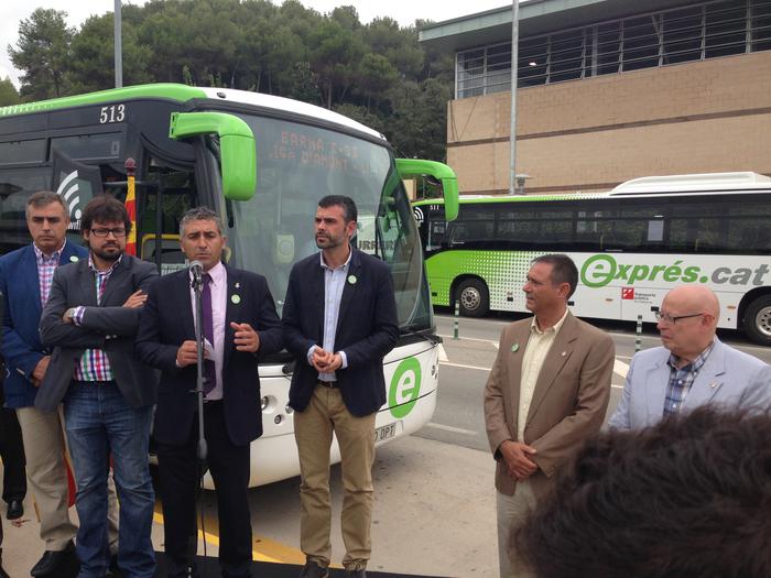 El conseller de Territori i Sostenibilitat, Santi Vila, ha presentat avui a Bigues i Riells la nova línia de bus e7 de la xarxa exprés.cat, que comunicarà Barcelona amb els municipis de la Vall del Tenes amb velocitat comercial alta i amb serveis d’altes prestacions.