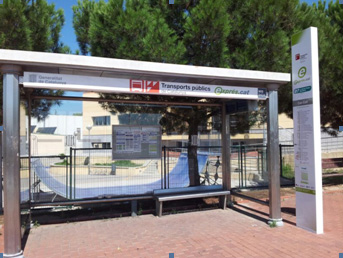 - Informació a l’usuari en temps real: la línia compta amb 5 pantalles d’informació dinàmica instal·lades en marquesines que ofereixen dades actualitzades del temps de pas del vehicle. A més, els propis autobusos disposen de displays interiors amb la informació de la propera parada.