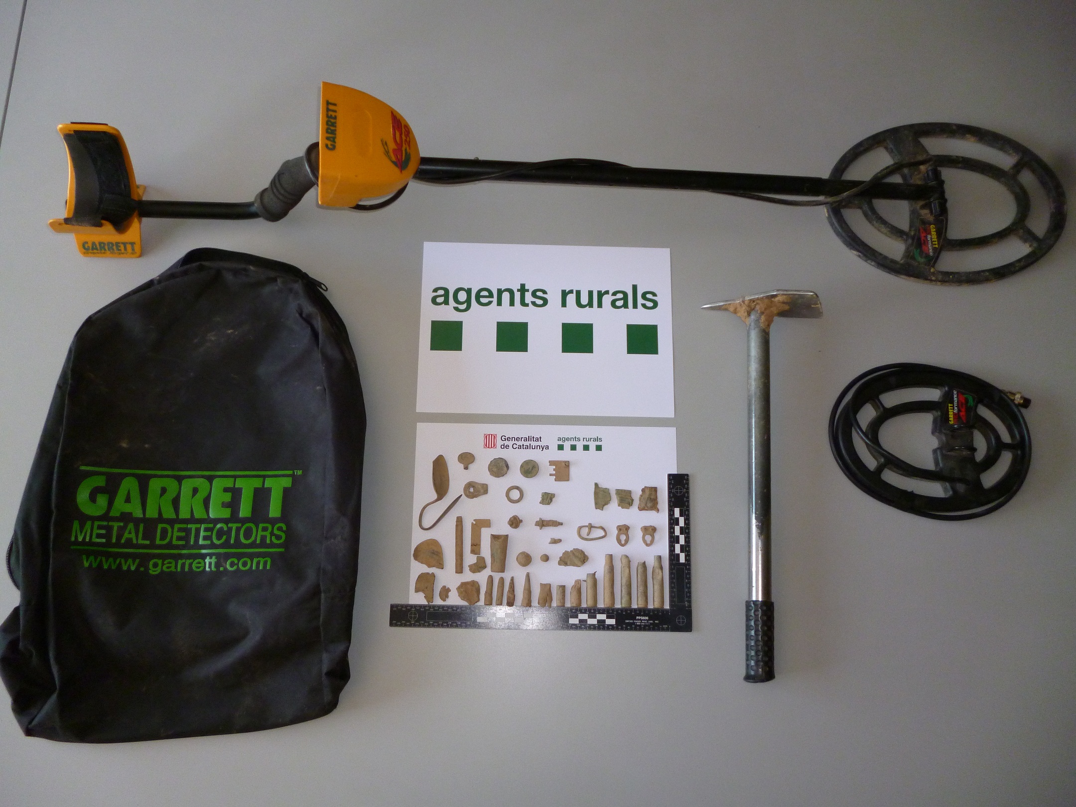 La persona duia tres peces metàl·liques en una butxaca, i en l’escorcoll del vehicle que van fer els agents van trobar 37 objectes metàl·lics més, alguns dels quals podrien tenir valor arqueològic. Els agents rurals van fer el comís preventiu del detector de metalls, de la piqueta i de tots els objectes per posar-los a disposició de l’autoritat competent.
