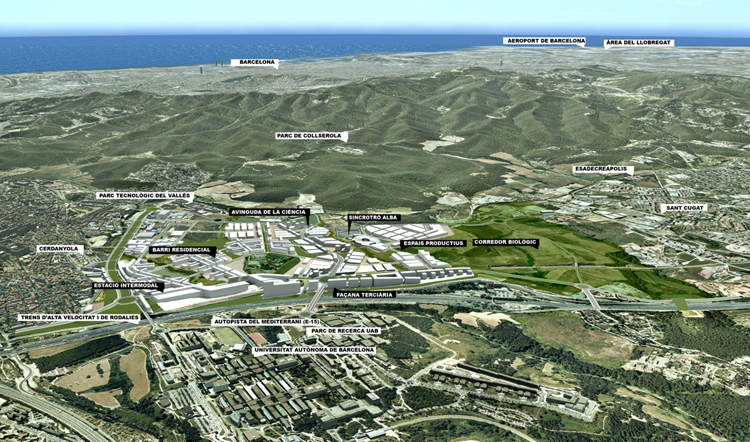 - El parc científic, tecnològic i productiu de més d’un milió de metres quadrats de sostre, amb capacitat per a concentrar 40.000 llocs de treball d’alt valor afegit. Inclou parcel·les destinades a acollir centres de recerca públics i privats, així com empreses vinculades amb la biotecnologia, la nanotecnologia, l’electrònica avançada, el processament de dades i els nous materials. El vaixell insígnia d’aquest parc és el sincrotró Alba, l’accelerador de partícules que permetrà situar Catalunya al capdavant de la investigació europea.