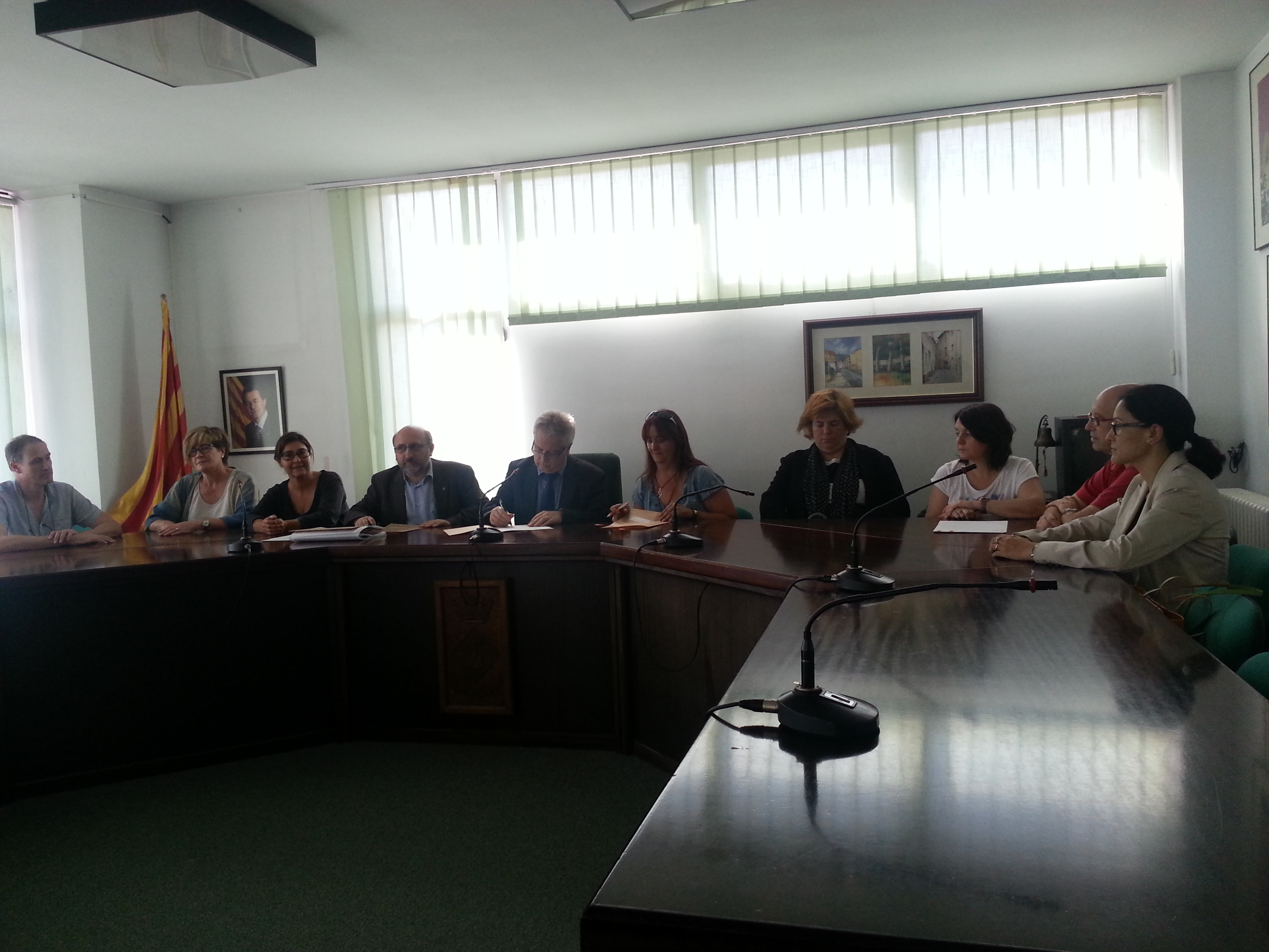 El secretari d’Empresa i Competitivitat, Pere Torres, l’alcalde de Santa Coloma de Farners, Antoni Solà Bohigas, i la presidenta de la Federació de Comerç de la Selva, Marta Julià Bosch, han signat aquesta tarda a l’Ajuntament un conveni de dinamització per impulsar el projecte de centre comercial a cel obert a la ciutat i a la comarca de la Selva.