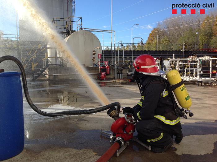 Protecció Civil de la Generalitat ha organitzat avui dijous, juntament amb l’empresa d’emmagatzematge, transport i distribució de combustible, hidrocarburs i productes petrolífers CLH S.A. un simulacre de fuita i incendi en un tanc d’additius a les instal·lacions que l’empresa CLH té a Girona.