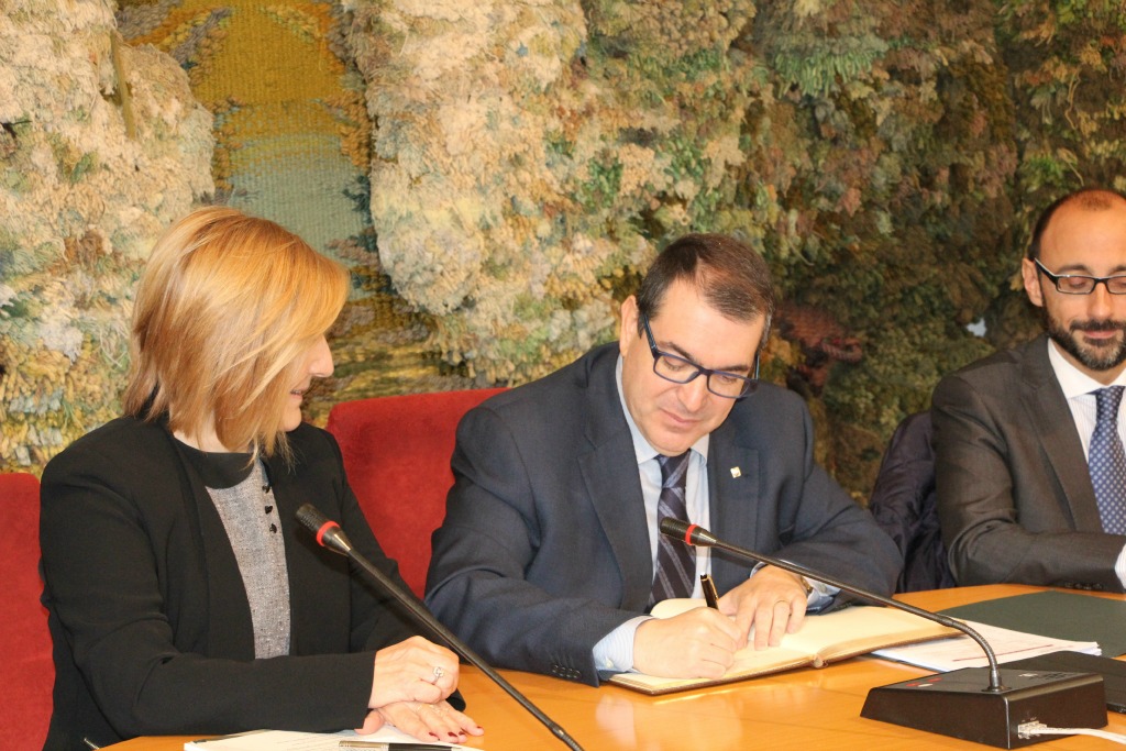 Durant la seva visita al consistori el conseller també ha signat el Llibre d’Honor de l’Ajuntament.