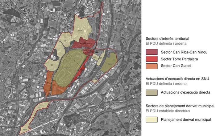 El PDU abasta un total de 574,22 ha, de les quals 77,24 ha es destinaran a tres sectors d’interès supramunicipal i 121,12 ha a dos àmbits d’execució directa en sòl no urbanitzable que acolliran noves activitats.