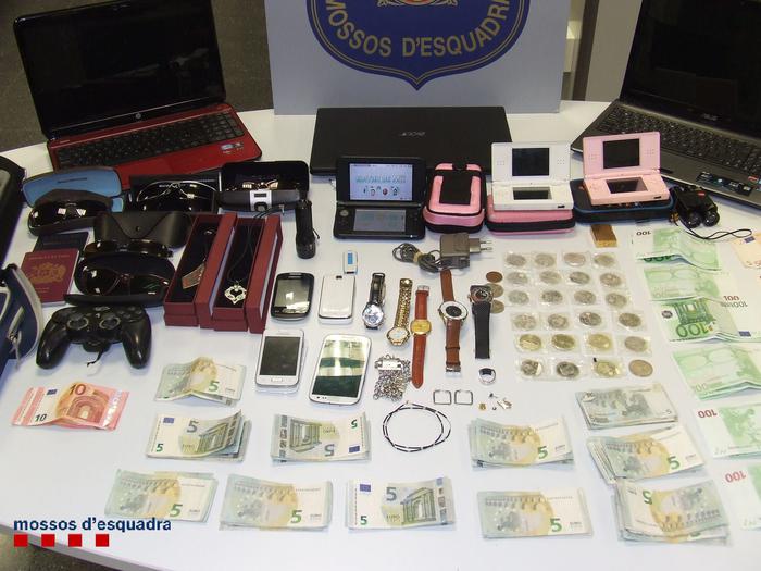 Dins les maletes els agents van trobar diversos objectes sostrets: per exemple, joies, rellotges d’alta gama, monedes de plata, telèfons mòbils, ordinadors portàtils i diners en efectiu. Provenien d’un robatori amb força en un domicili de Cerdanyola del Vallès i d’un altre il·lícit en una casa de Premià de Mar.
