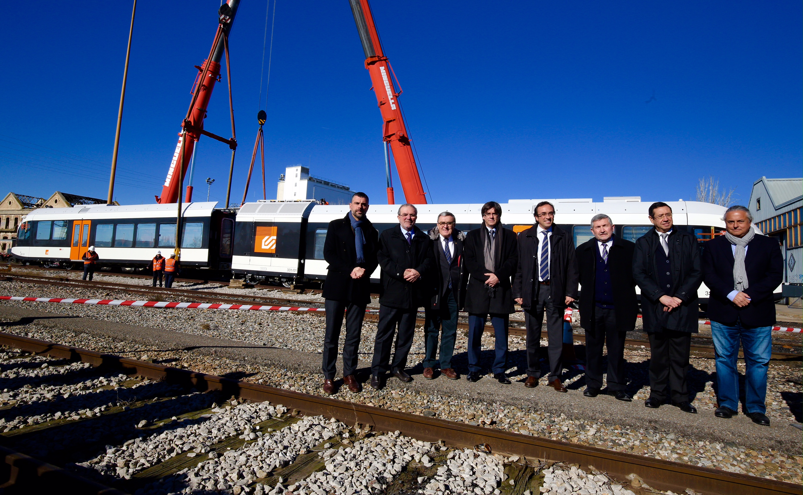 - El cap de l’Executiu ha presidit l’acte de col·locació a la via del primer dels dos nous trens de la línia Lleida-La Pobla , acompanyat del conseller de Territori i Sostenibilitat, Josep Rull