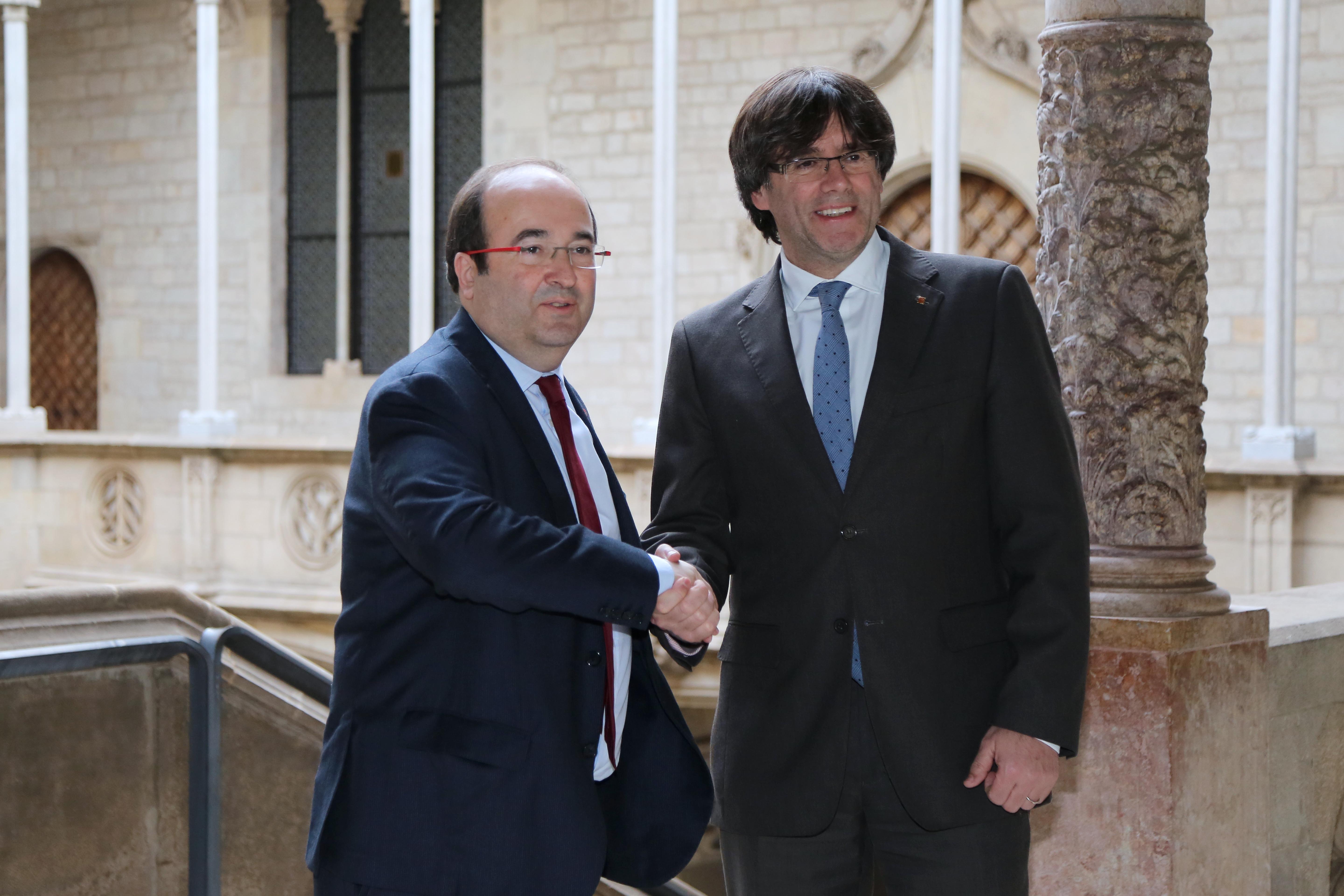 El president de la Generalitat va obrir la seva ronda de contactes polítics rebent la presidenta del Parlament, Carme Forcadell. Ahir va ser el torn de la Cap de l’Oposició, Inès Arrimadas i avui s’ha reunit amb Miquel Iceta. El proper dilluns es reunirà amb el cap del grup parlamentari de Catalunya Sí Que Es Pot, Lluís Rabell.