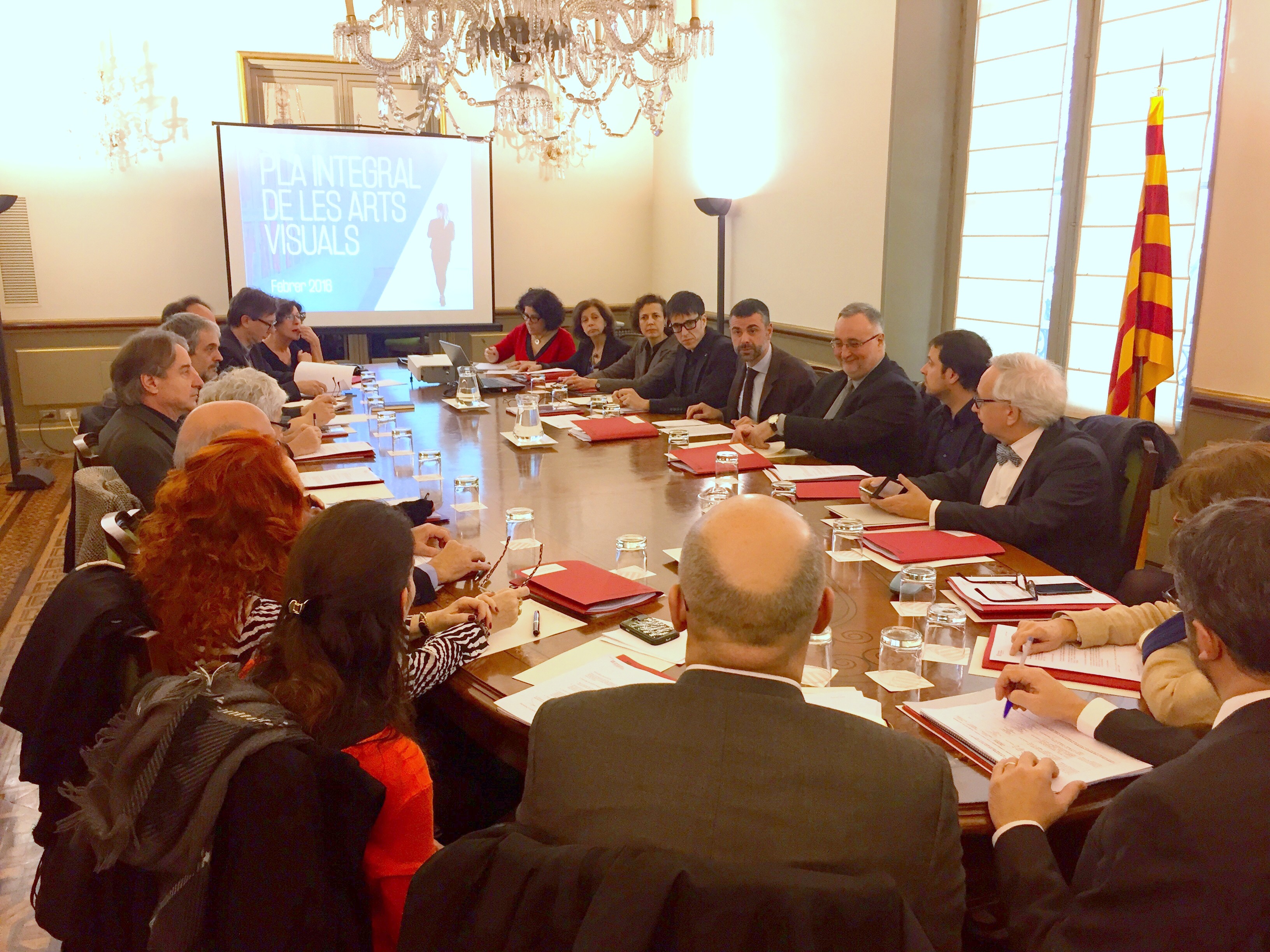 El conseller de Cultura, Santi Vila, s’ha reunit aquest matí amb la Taula institucional del Pla Integral de les Arts Visuals per presentar el primer document de treball i les accions prioritàries que s’hauran de desenvolupar en els propers dos anys. Aquest pla, que s’ha consensuat amb el sector, dóna resposta a les necessitats i inquietuds actuals, basant-se en una refundació de les polítiques públiques i privades en aquest àmbit i ha de ser, en definitiva, l’instrument que permeti assegurar la continuïtat i transcendir legislatures gràcies al compromís explícit entre institucions i tots els agents que incideixen en el sector.