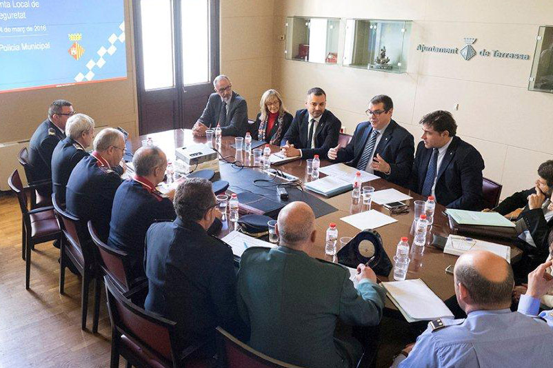 El conseller d’Interior, Jordi Jané, ha assistit avui a la Junta Local de Seguretat de Terrassa juntament amb l’alcalde de la ciutat, Jordi Ballart.