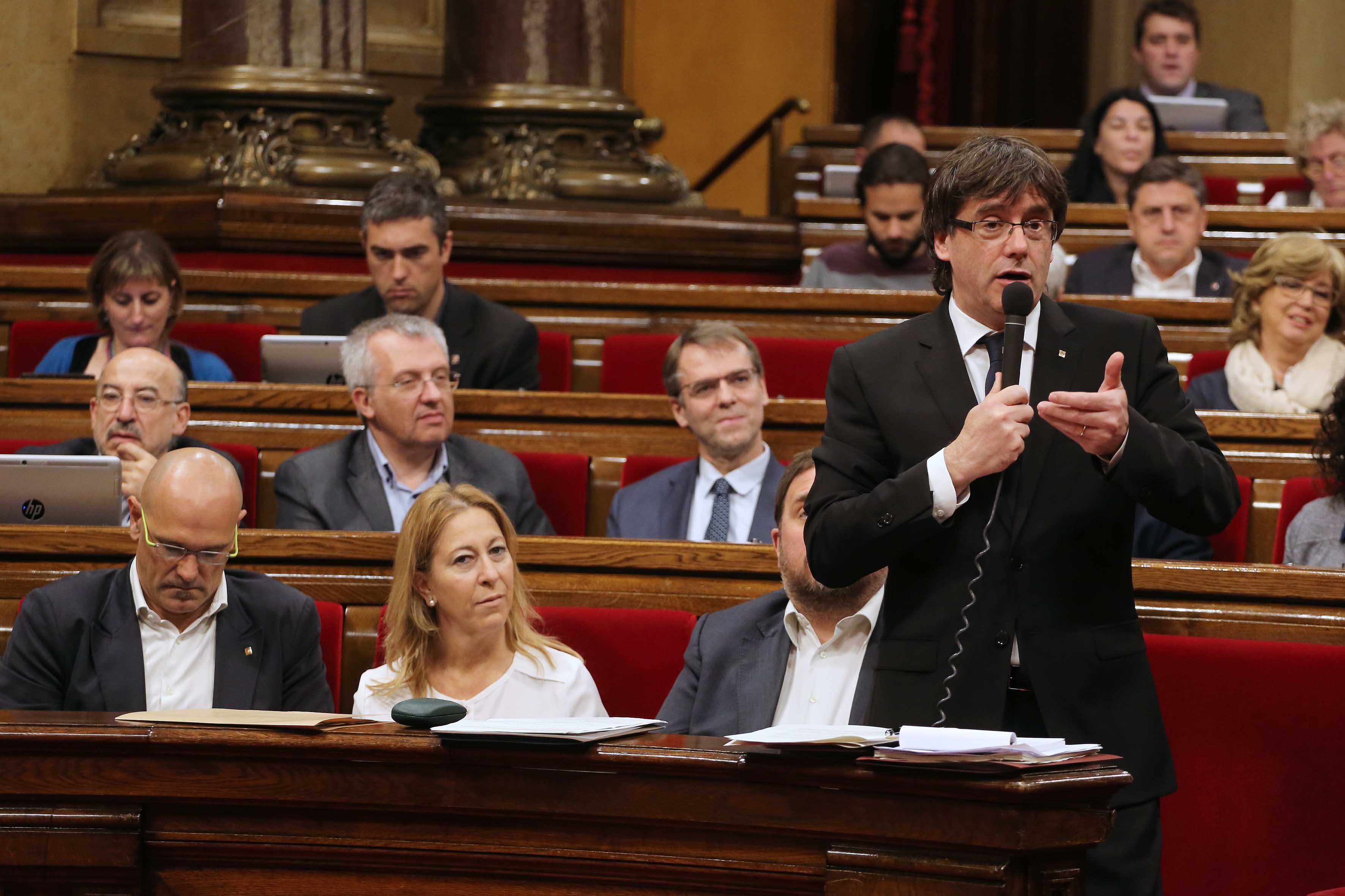 El president de la Generalitat, Carles Puigdemont, ha afirmat aquest matí davant del ple del Parlament que “sóc un president escollit per un Parlament que té majoria absoluta independentista, i això ho ha de saber el president del Govern espanyol en funcions, qui ha d’entendre que judicialitzar la política no és el millor camí per resoldre les qüestions i introduir la serenitat i el seny”.