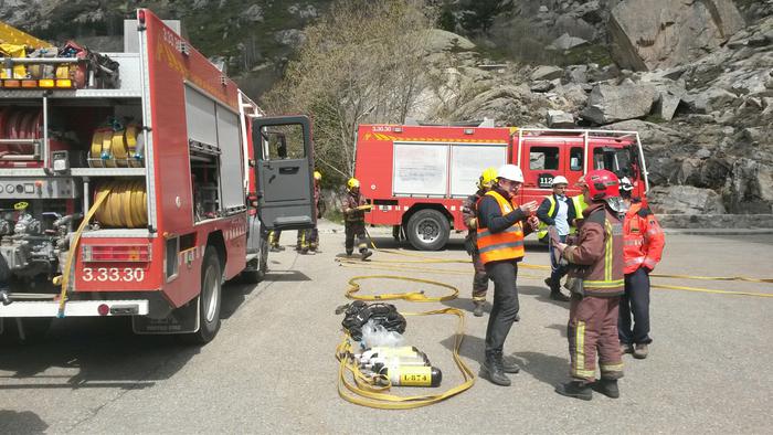 El foc s’hauria produït en un transformador de serveis auxiliars de la central, la qual cosa hauria activat l’alarma d’incendis de la instal·lació i, de retruc, hauria arribat l’avís al Centre de Control de Producció Hidràulica situat a la seu de Lleida, al barri dels Magraners. En l’acció també s’ha simulat un accident laboral, en aquest cas d’un bomber que treballava extingint el foc i que hauria resultat ferit. Immediatament s’ha mobilitzat el personal de guàrdia, és a dir, l’equip d’intervenció (EI) i també el d’emergència, amb l’objectiu d’atendre la situació i socórrer el treballador.