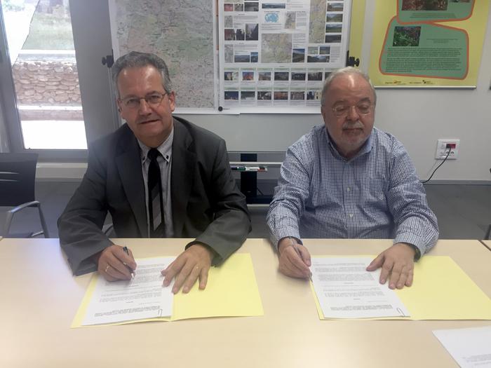 El director de l’Institut Cartogràfic i Geològic de Catalunya (ICGC), Jaume Miranda, i l’alcalde de Tremp, Joan Ubach, han signat aquest dimarts un conveni de col·laboració per ubicar a la població un museu geològic a l’aire lliure de manera permanent.