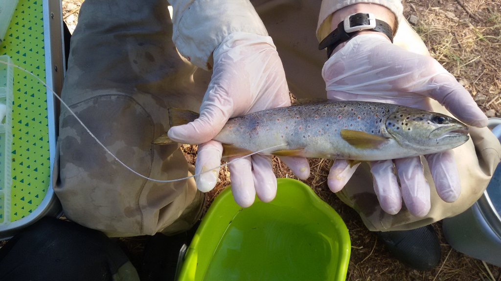 Efectius del Cos d’Agents Rurals han participat aquests dies en el marcatge de noranta exemplars de truita comuna (Salmo trutta) a la Noguera Pallaresa en el marc d’un estudi que està elaborant Endesa sobre la mobilitat de les truites als rius pirinencs.