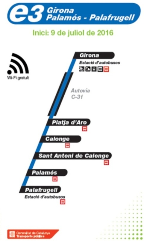 El Departament de Territori i Sostenibilitat posa en servei aquest dijous, 1 de setembre, 12 expedicions directes en dies laborables del bus exprés que comunica Girona amb Platja d’Aro, Calonge, Sant Antoni de Calonge, Palamós i Palafrugell (Baix Empordà).