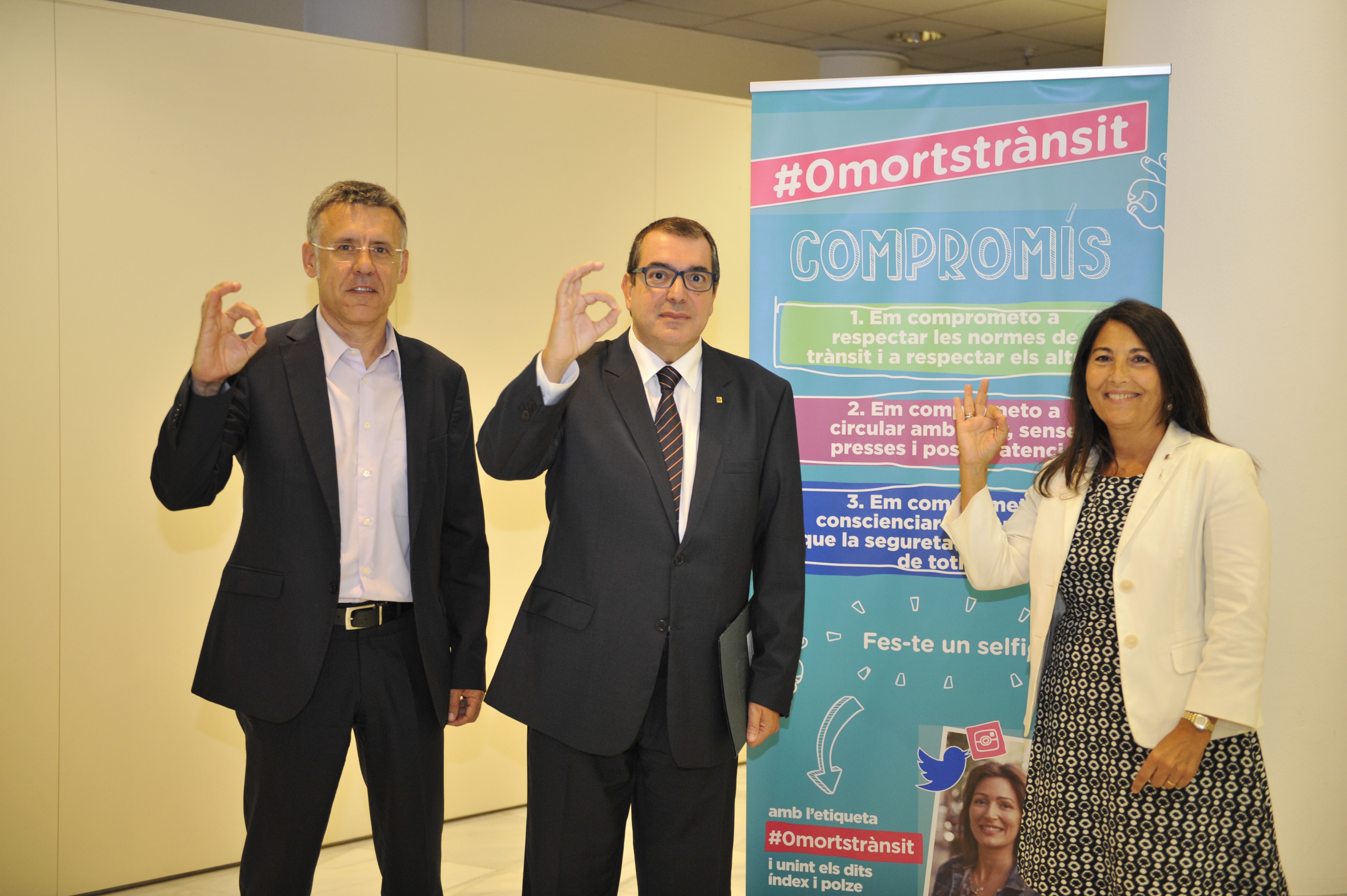 Durant l’acte tant el conseller d’Interior com la directora de l’SCT han aprofitat per sumar-se a la campanya #0mortstrànsit que avui ha endegat el departament d’Interior junt amb el Servei Català de Trànsit i que té per objectiu conscienciar la ciutadania sobre l’objectiu de reduir a zero les víctimes mortals per sinistre viari a través de la seva implicació en la campanya fent-se una autofoto (selfie) amb els dits en forma de 0 i/o OK (unint els dits índex i polze) i compartint-la a Twitter, Facebook, Instagram o Whatsapp. D’aquesta manera, amb la campanya es pretén viralitzar aquest gest i el seu significat com a símbol de compromís amb la prevenció dels sinistres viaris i de la responsabilitat compartida en la seguretat viària.