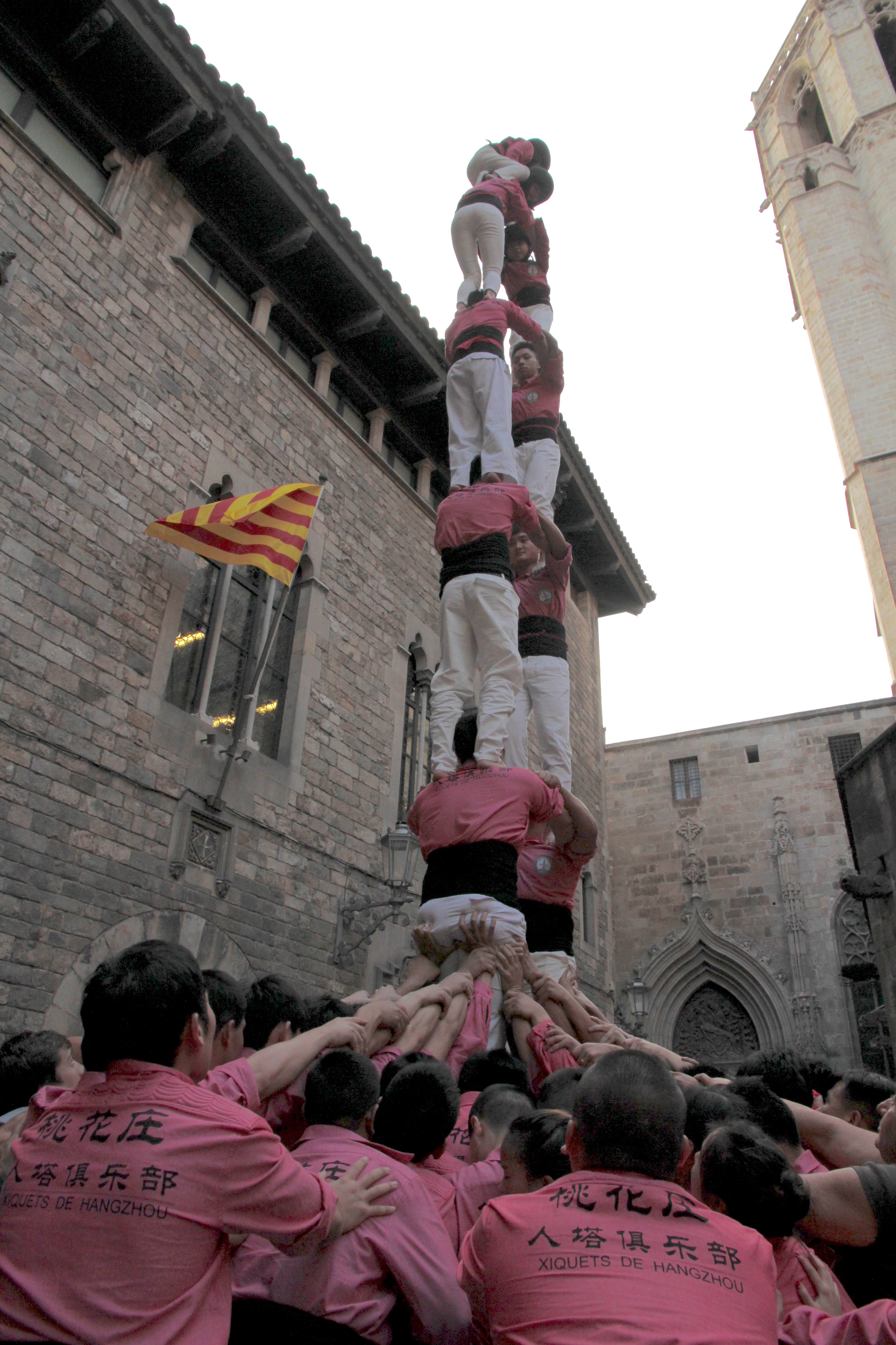 - La Colla dels Xiquets de Hangzhou i la Colla Vella dels Xiquets de Valls han actuat aquest dimarts a la tarda davant la seu del Departament d’Afers Exteriors