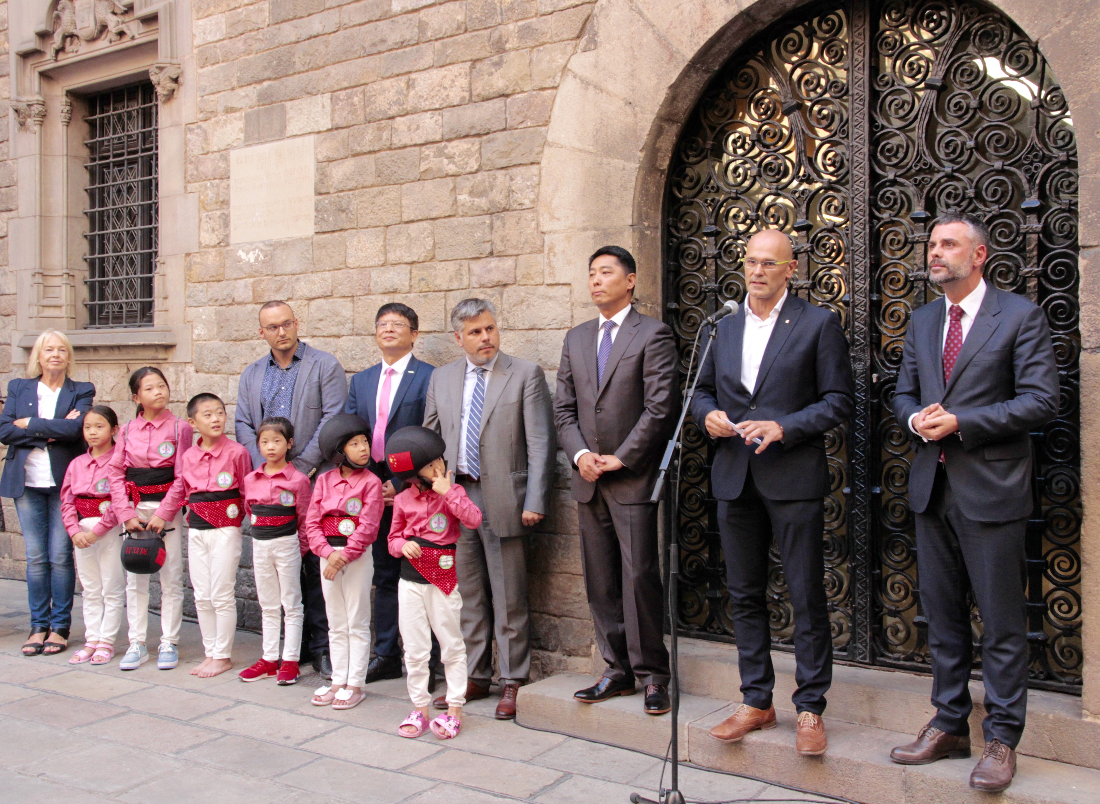 El conseller d’Afers Exteriors, Relacions Institucionals i Transparència, Raül Romeva, i el conseller de Cultura, Santi Vila, han donat la benvinguda aquest dimarts a la tarda a la colla dels Xiquets de Hangzhou, amb motiu de la participació d’aquesta agrupació en el Concurs de Castells 2016 a Tarragona. A l’acte també hi ha assistit el cònsol general de la República Popular de la Xina a Barcelona, Hang Teng.