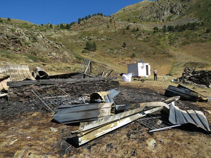 L’incendi del refugi es va produir dissabte passat al vespre, presumptament per un mal aïllament del tub de l’estufa en contacte amb la paret de la cabana. Per sort, tant el pastor com el seu gos no van prendre mal, tret d’una petita intoxicació per inhalació de fum. De la construcció, però, no en va quedar res.