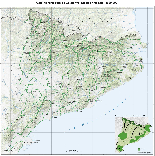 La transhumància consisteix en el desplaçament de ramats de bestiar entre la plana i la muntanya a la recerca de pastures d’hivern i d’estiu, transitant per vies pecuàries. A Catalunya s’estima que la xarxa de vies pecuàries té prop de 20.000 quilòmetres, distribuïts en una quinzena de camins de primer ordre relligats per una extensa xarxa de vies secundàries. Els desplaçaments dels ramats tenen el seu origen en època preromana, però és a partir del segle XII quan es comença a regular l’activitat i es crea una xarxa estable de camins.