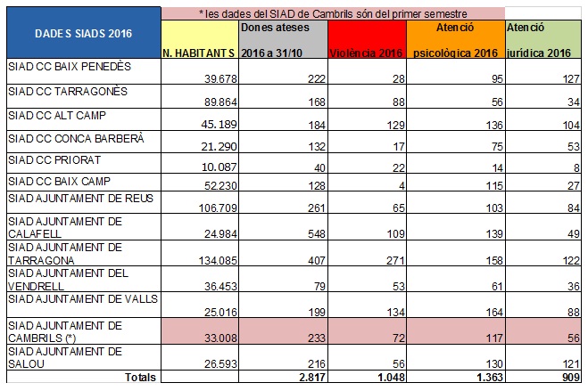 Durant l’acte els assistents han pogut conèixer la tasca que realitzen als SIADS de Reus i el Consell Comarcal del Baix Camp. Dues experiències positives que han servit per fer visible la tasca que realitzen aquests serveis d’atenció i informació adreçats a dones. La coordinadora territorial de l’ICD, Lídia Bargas, ha destacat que "tot i la disminució del nombre de morts cal seguir treballant fins no registrar-ne cap". Bargas també ha anunciat que amb els pressupostos del 2017 es crearà un Observatori per la Igualtat de Gènere, que té per objectiu "fer visible la violència masclista".
