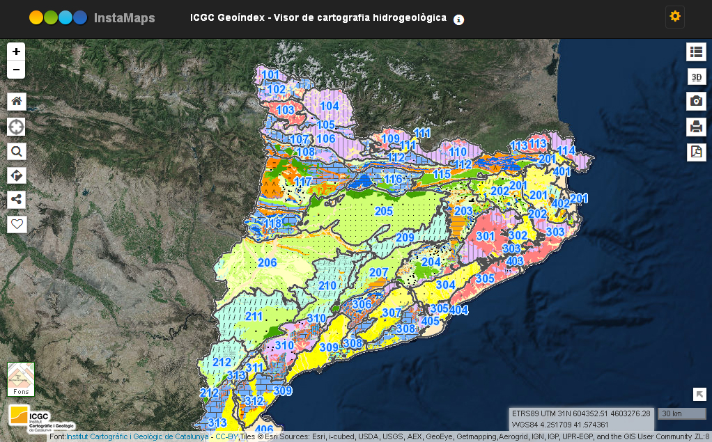 - La nova versió del Mapa d’Àrees Hidrogeològiques 1:250.000 de Catalunya ha estat elaborat per l’Institut Cartogràfic i Geològic de Catalunya (ICGC) en col·laboració amb l’Agència Catalana de l’Aigua (ACA)