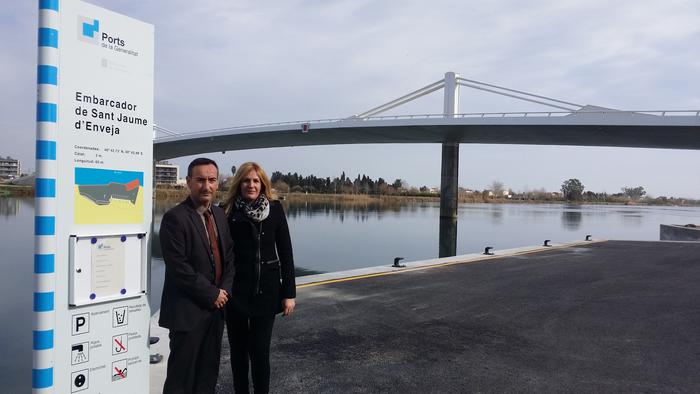 El gerent de Ports de la Generalitat, Joan Pere Gómez i Comes, acompanyat de la regidora de Promoció Econòmica de l’Ajuntament de Sant Jaume d’Enveja, Àngels Garriga, ha visitat avui l’embarcador fluvial després de la reforma duta a terme. L’objectiu d’aquest projecte ha estat impulsar nous usos per promoure el turisme i els esports nàutics, donar continuïtat al carril bici del passeig fluvial i crear un nou espai per als ciutadans integrat a l’entorn del delta de l’Ebre.
