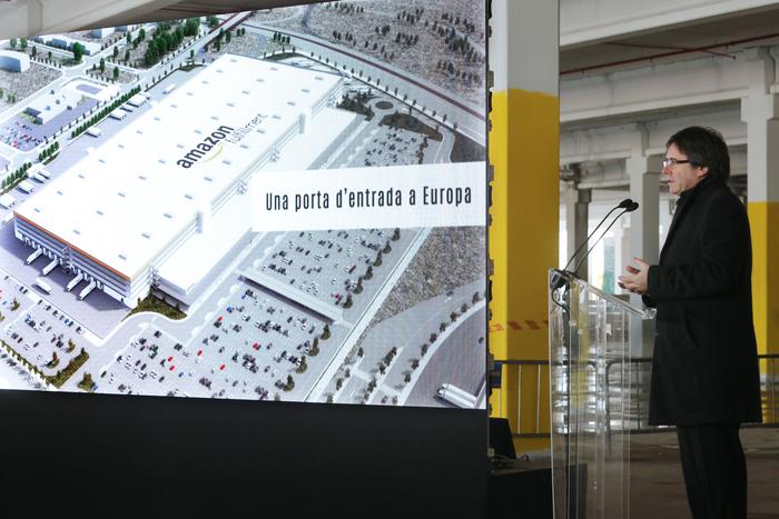 El cap de l’Executiu ha felicitat Amazon per la tria del Prat com a seu de la futura planta perquè “és un gran indret per les seves comunicacions, pel teixit que hi ha aquí, pel potencial que té, perquè és una veritable biga mestra del sistema econòmic del sud d’Europa, i per aquesta vocació desacomplexada de contribuir al desenvolupament econòmic”.