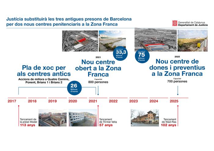 Amb el trasllat dels interns de la Model, de Trinitat i de Wad-Ras, Justícia tancarà les tres presons que hi ha a Barcelona, que són les més antigues de tot Catalunya. La presó de la Trinitat té 57 anys i s’ha adaptat a diversos usos: primer, per a dones i, després, per a joves i centre obert. Des del 2009, està parcialment enderrocada. Wad-Ras és una construcció de 1915, que ja acumula 102 anys d’història. L’edifici també s’ha adaptat per fer les funcions de centre de menors, presó de dones i centre obert, però va ser inicialment dissenyat com a escola-reformatori. La Model, per la seva banda, es va inaugurar el 1904 i acumula ja 113 anys en funcionament.