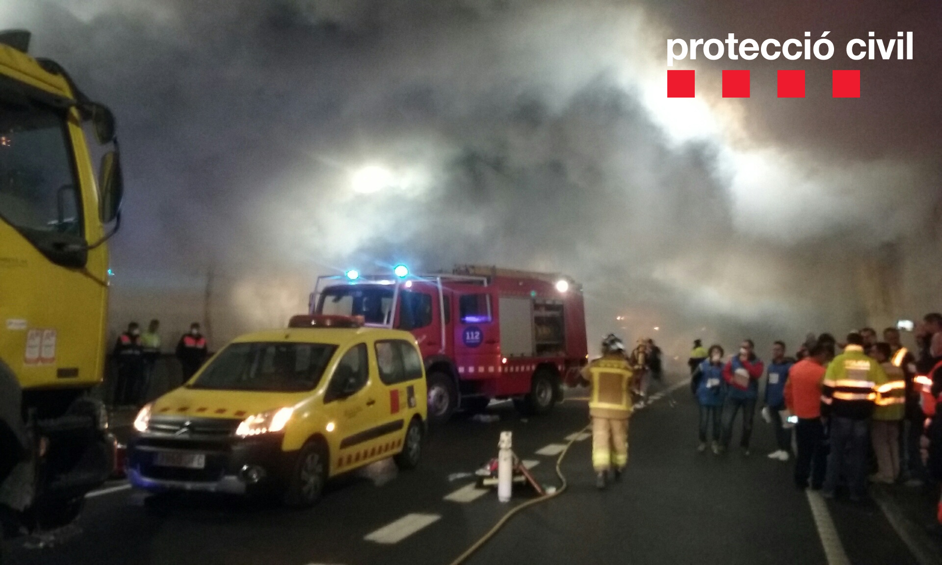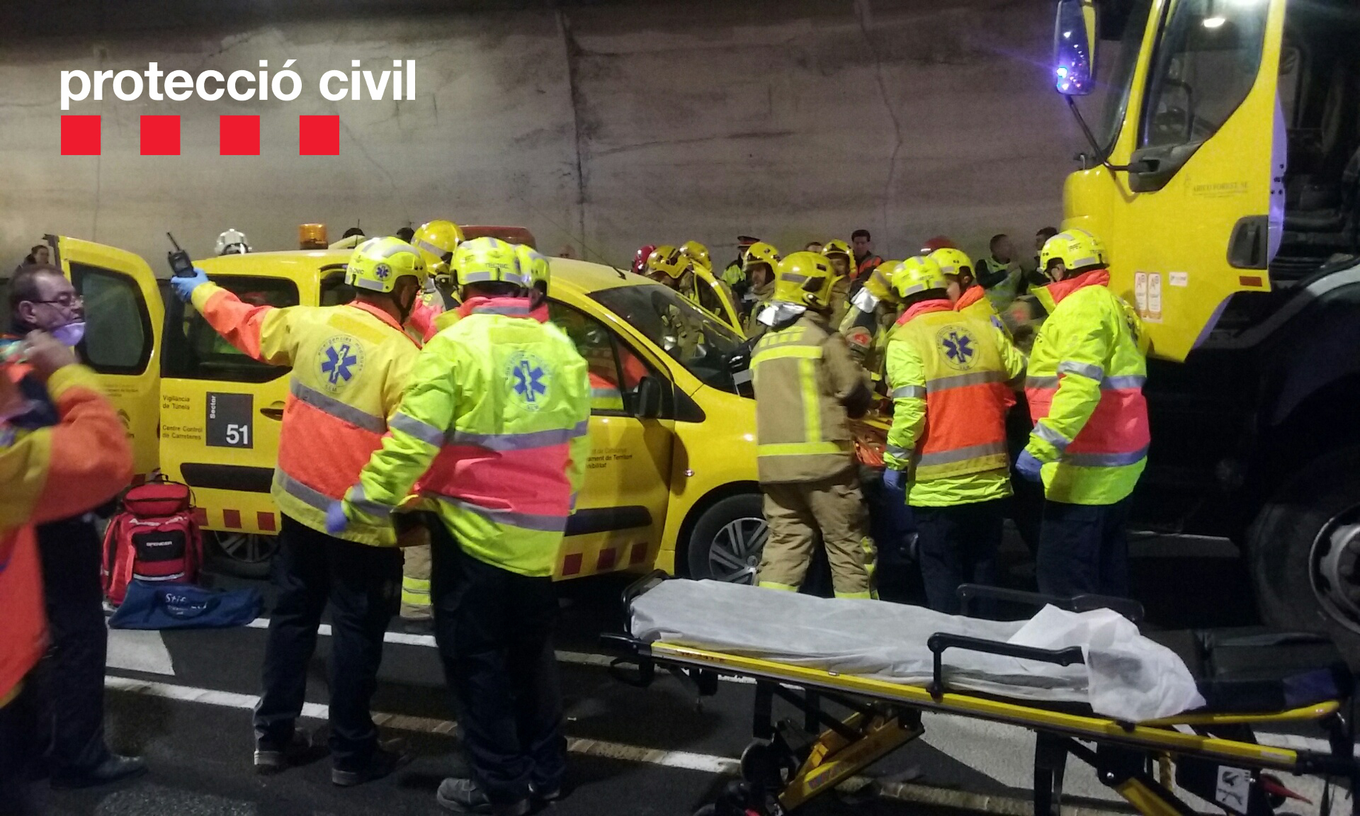 El centre de control Viari de la Generalitat de Catalunya, a Vic, en detectar l’accident, ha avisat al telèfon d’emergències 112 de Catalunya i al Centre de Coordinació Operativa de Catalunya de Protecció Civil de la Generalitat. En rebre l’avís, s’han mobilitzat tots els efectius d’emergències necessaris per resoldre la situació, i el personal propi de manteniment del túnel que actua com a equip de primera intervenció del túnel, ja que tenen presència 24 hores en aquest grup de túnels. Han intervingut 9 persones dins de l'equip de gestió i explotació del túnel.