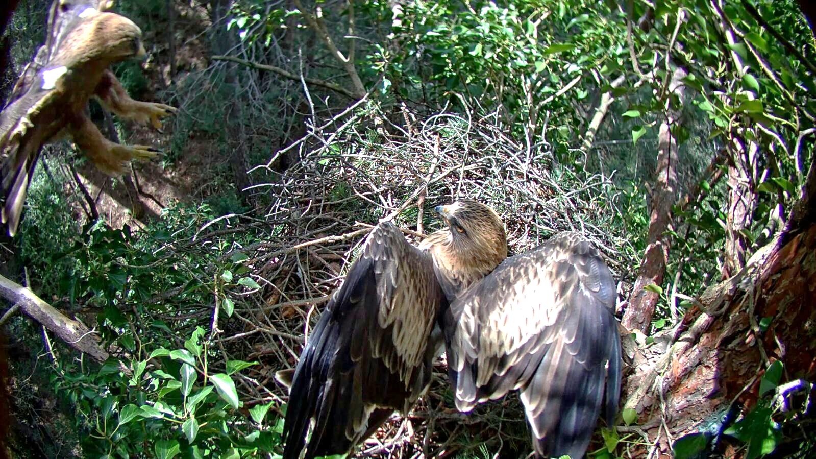 La parella objecte de seguiment es va detectar l’any 2011 i està formada per un mascle de fase clara –pit clar– i una femella de fase fosca –pit fosc–. Segons les imatges enregistrades, la femella va arribar a l’àrea de cria el 28 de març, i el mascle ho va fer un dia després. En aquests moments les àguiles estan refent i arranjant el niu utilitzat l’any anterior i s’espera que realitzin la posta a finals d’abril.