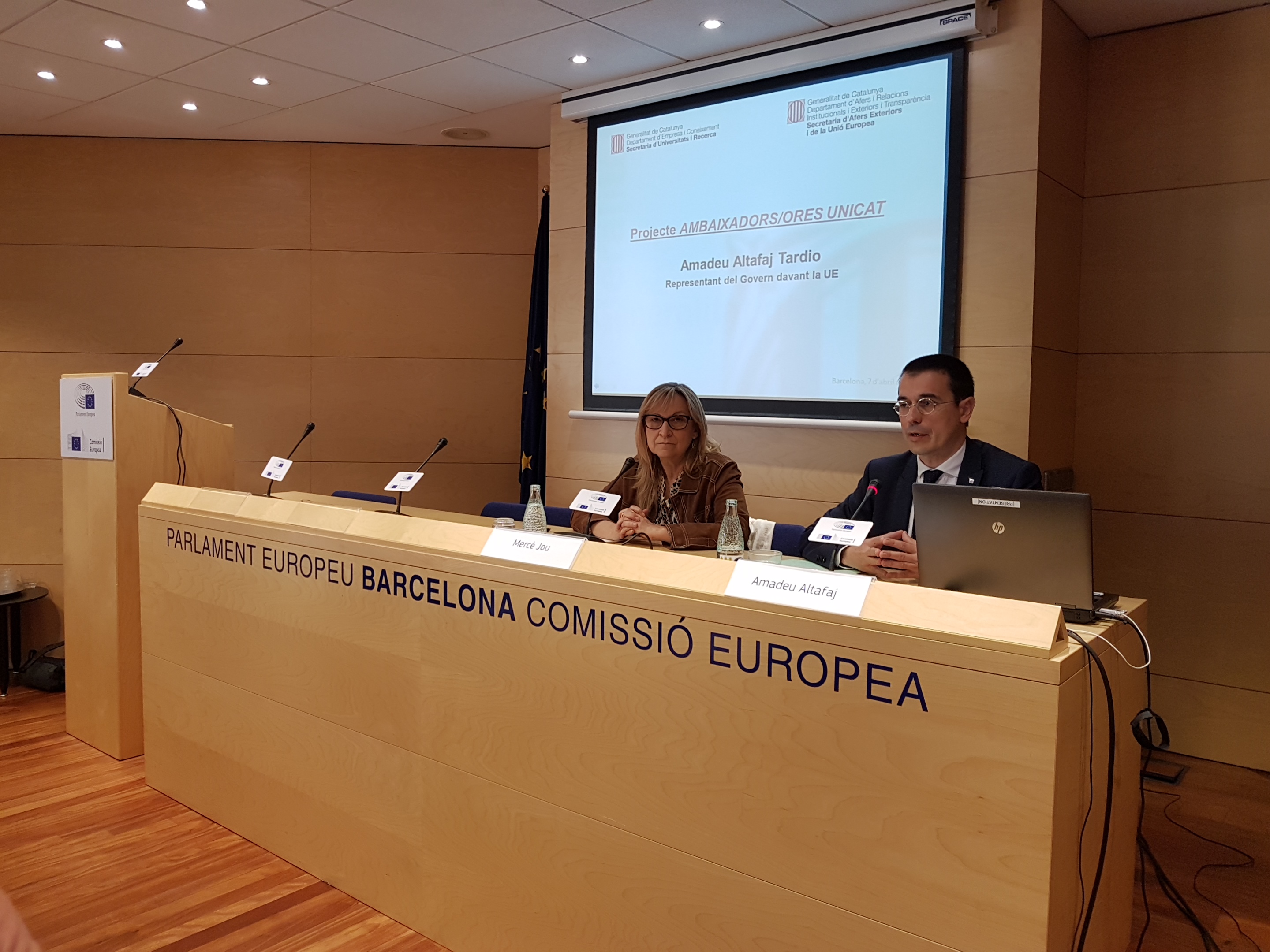 D’una banda, el Projecte Ambaixadors/es UNICAT, impulsat pel Consell Interuniversitari de Catalunya (CIC) i la delegació del Govern davant la UE, que pretén crear una xarxa d’ambaixadors/es per ajudar a difondre des de tot el territori català les pràctiques i oportunitats que ofereix la UE. El representant del Govern de la Generalitat davant la UE, Amadeu Altafaj, ha manifestat la seva satisfacció per veure néixer aquest projecte i ha afirmat que a partir d’ara “moltes universitats catalanes comptaran amb un jove especialista en oportunitats de feina i pràctiques a les institucions de la UE. Desitgem que molts joves se’n puguin beneficiar”.