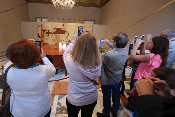 Els ciutadans que s’han apropat la seu del Govern han pogut visitar la Sala Tarradellas, on avui damunt la taula rodona al voltant de la qual es reuneixen cada setmana els membres de l’executiu hi havia col·locada una urna amb el document, signat divendres pel Govern, de compromís a preparar, convocar i celebrar el referèndum per decidir sobre el futur polític de Catalunya. Els ciutadans també han pogut visitar la capella de Sant Jordi, el Saló Sant Jordi, la Sala Torres Garcia i la Sala Clavé, així com altres sales de treball, reunions o la sala de premsa on treballen els mitjans que vénen a cobrir actes al Palau.