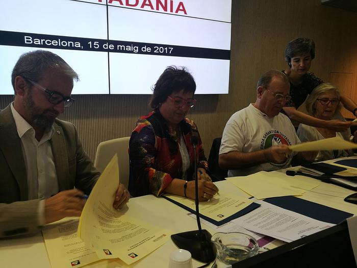 En la signatura de l’acord hi ha estat presents representants de federacions i entitats del tercer sector, promotors de la ILP, patronals (Foment i PIMEC), sindicats (UGT i CCOO), i entitats municipalistes. (Federació de Municipis de Catalunya i Associació Catalana de Municipis).