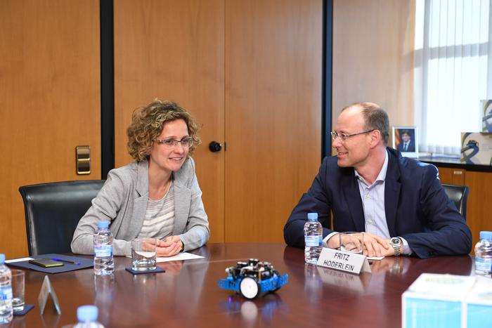 Un total de 200 escoles catalanes disposen de robots educatius mBot, fruit d’una donació de la consultora everis que té com a objectiu fomentar les vocacions científiques i tecnològiques entre els més joves. D’aquests, 25 els distribuirà Ensenyament arreu territori entre els centres de recursos compartits, que els facilitaran a les escoles que més ho necessitin. Avui a la tarda s’ha dut a terme al Departament l'acte de lliurament d’aquestes 25 unitats, amb la presència de la consellera d’Ensenyament, Meritxell Ruiz, i el conseller delegat d'everis a Europa, Fritz Hoderlein.
