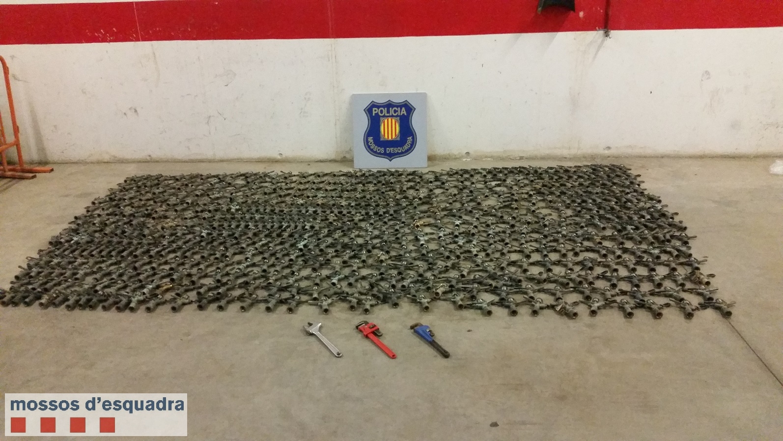 · Se’ls va detenir quan intentaven vendre, en un centre de recollida de residus d’Esparraguera (Baix Llobregat), aspersors que acabaven de sostreure la mateixa nit