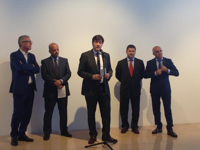 El delegat del Govern a Tarragona, Òscar Peris, acompanyat per l’alcalde de Tarragona, Josep Fèlix Ballesteros, el director de l’Agència Catalana de l’Aigua, Jordi Agustí, el president del Port de Tarragona, Josep Andreu i el cap de Departament Zona 1 del Departament de Depuració d’Acciona Aigua, Antonio Pozo, ha inaugurat avui l’exposició 500 depuradores. El model de sanejament pioner a Catalunya, una mostra que analitza l’evolució del nostre país a partir de l’entrada en servei dels diversos sistemes de sanejament i quins són els reptes futurs.