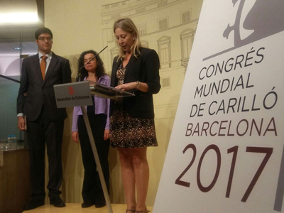 - La consellera de la Presidència ha presentat avui en roda de premsa al Palau de la Generalitat, juntament amb el secretari de la Confraria de Campaners i carillonistes de Catalunya, Ramón Gené, i la carillonista del Palau de la Generalitat, Anna Maria Reverté, la 19a edició del Congrés Mundial de Carilló