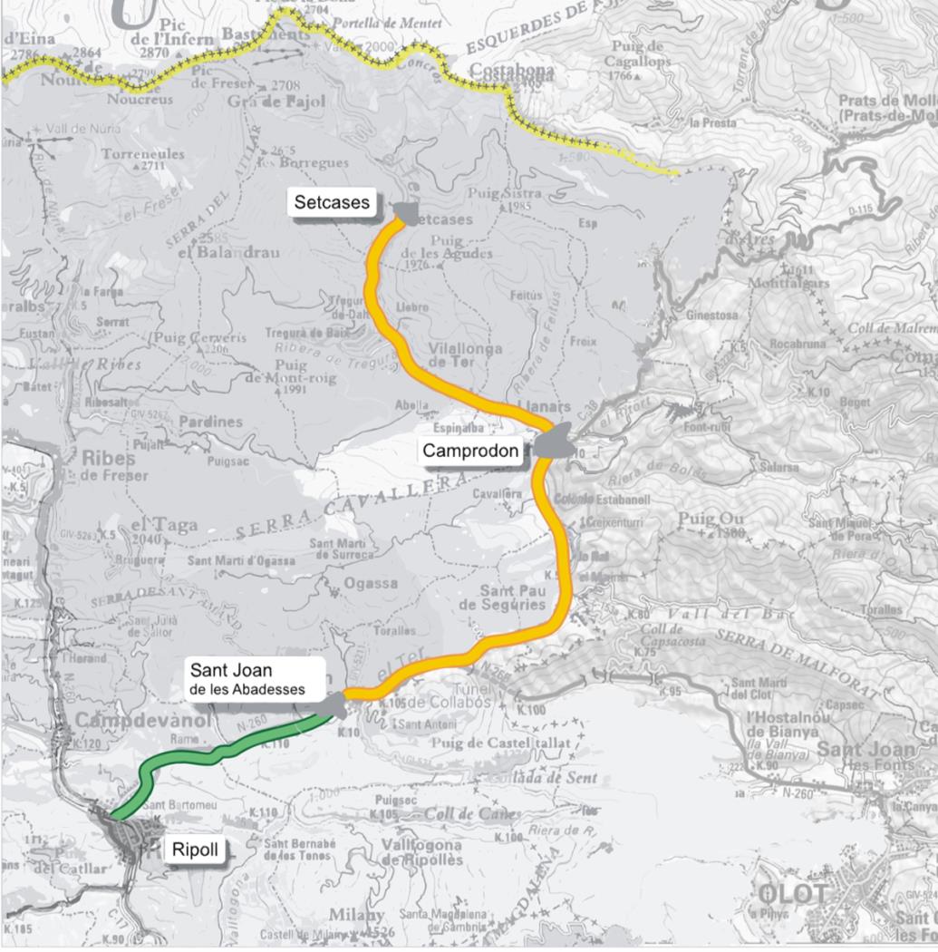 El 2018, un cop entri en servei el tram fins a Sant Pau de Segúries, s’impulsarà la continuïtat del tram entre aquest municipi i Camprodon per enllaçar amb el tram que ja estarà en servei entre Camprodon i Llanars. A partir de 2019 s’impulsarà la continuïtat des de Llanars fins a Vilallonga del Ter i, el 2020, fins a Setcases.