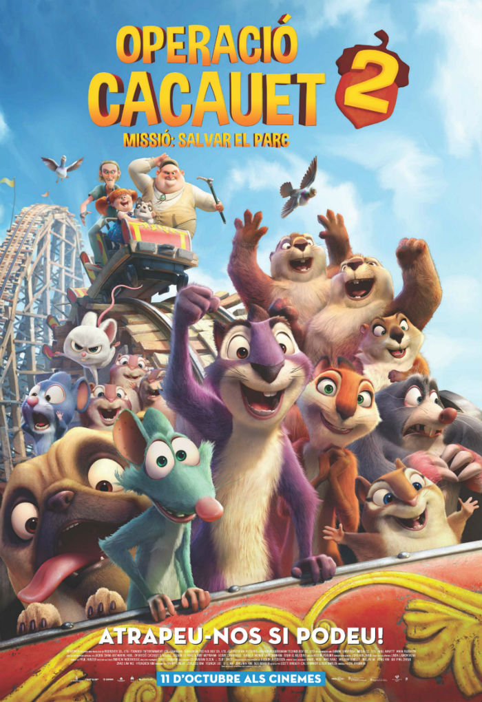 Una nova entrega de les aventures dels esquirols més entremaliats de la pantalla: Operació cacauet 2. Missió: salvar el parc s’estrena aquest dimecres, 11 d’octubre. El film es podrà veure doblat al català en 27 sales, i en una sala en versió original subtitulada en català (VOSC). El Departament de Cultura, mitjançant la Direcció General de Política Lingüística, ha donat suport al doblatge i la subtitulació de la pel·lícula.