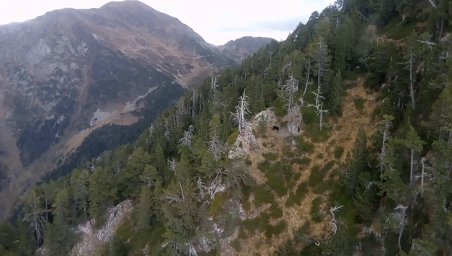 Tècnics de l’equip de seguiment del projecte Piroslife han enregistrat avui imatges aèries de l’os Goiat al Pirineu de la Val d’Aran. L’animal, que va ser alliberat el juny del 2016 en el marc d’aquest projecte europeu per aportar variabilitat genètica a la població d’ossos del Pirineu, compta amb un collar emissor GPS que monitoritza els seus moviments.