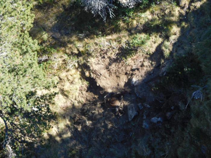 Després de dies sense apreciar pràcticament canvis en la seva localització, els tècnics han volgut verificar el seu estat físic, així com el funcionament correcte del sistema de seguiment de l’os. Així, s’han desplaçat fins a la zona per comprovar el seu òptim estat, i el del collar que permet rastrejar els moviments del plantígrad. L'equip ha localitzat també un ungulat semienterrat mort, que ha servit d'aliment per a l'os aquests últims dies, la qual cosa explica la seva manca de moviments.
